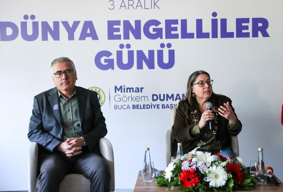 Buca Belediye Başkanı Görkem Duman, yapmış olduğu konuşmada, çalışmalarını sürdürürken özel gereksinimli bireylerin istihdamından sosyal yaşama katılımına kadar her alanda doğrudan "hakkın teslimini" savunmaya devam edeceklerini ifade etti.