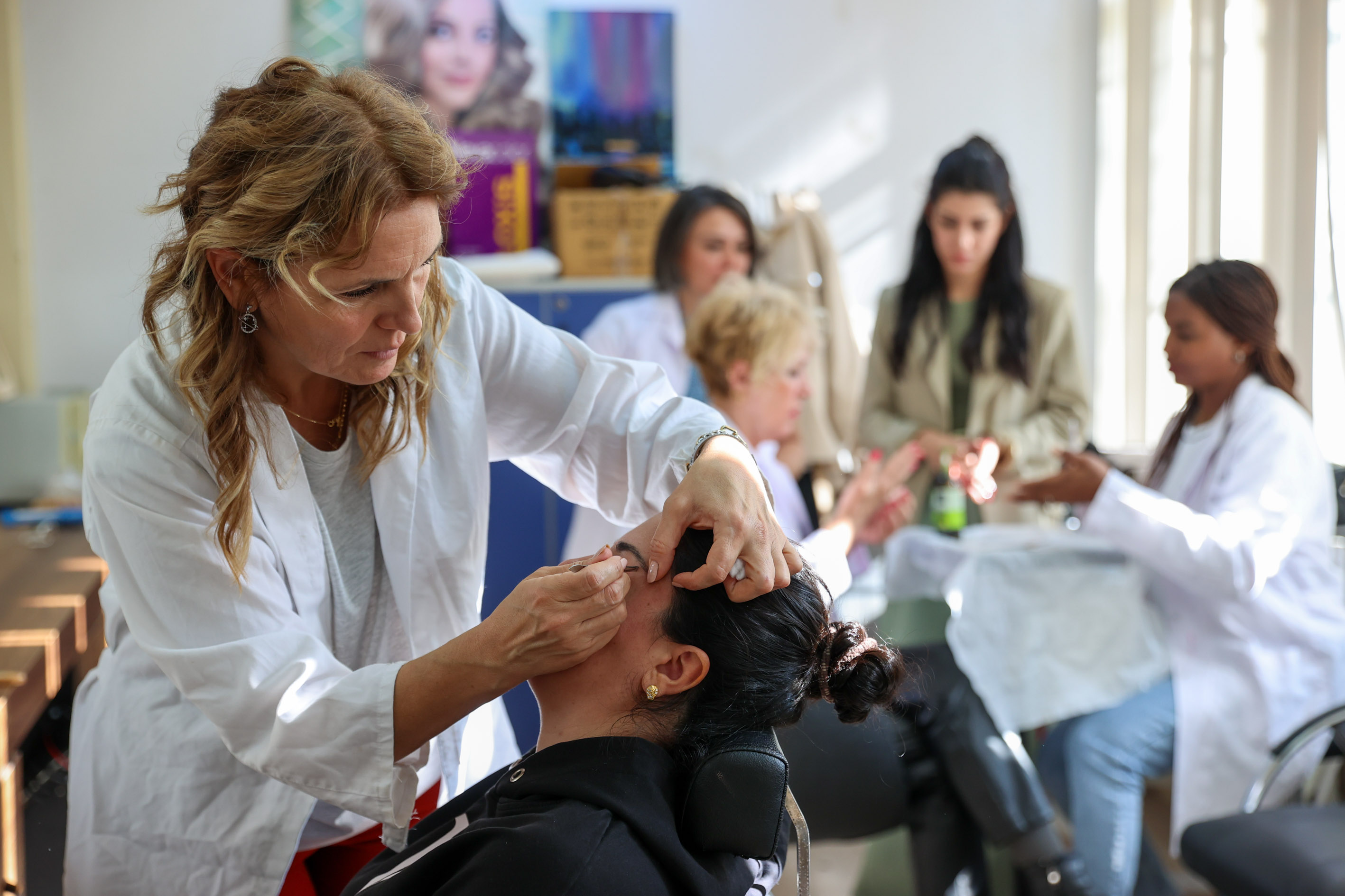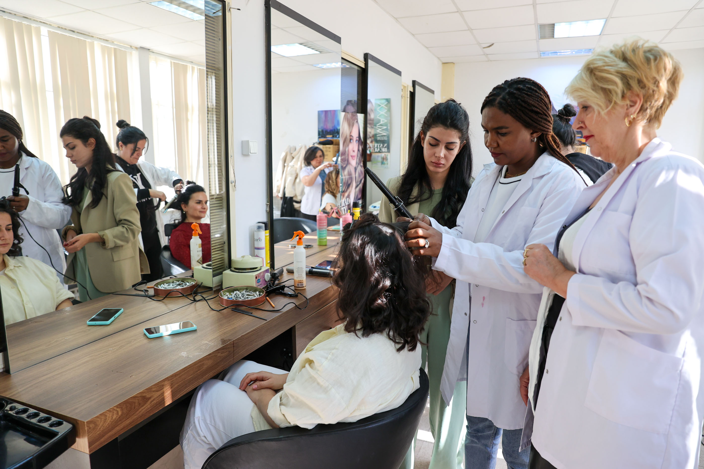 Kadınların ekonomik hayata kazandırılması için projeler üreten Buca Belediyesi’nin açtığı meslek edindirme kursları büyük ilgi görüyor. Bu kapsamda Buca Halk Eğitimi Merkezi Müdürlüğü ile ortaklaşa Evka-1 ve Ceren Özdemir semt evlerinde açılan kuaförlük kursları, Bucalı kadınlara ekonomik hayatta yeni fırsatlar sunuyor. Alanında uzman eğitmenler eşliğinde verilen kurslarda; saç kesimi, renklendirme, makyaj, topuz, fön gibi kuaförlük mesleğinin tüm temel ve ileri teknikleri öğretiliyor.