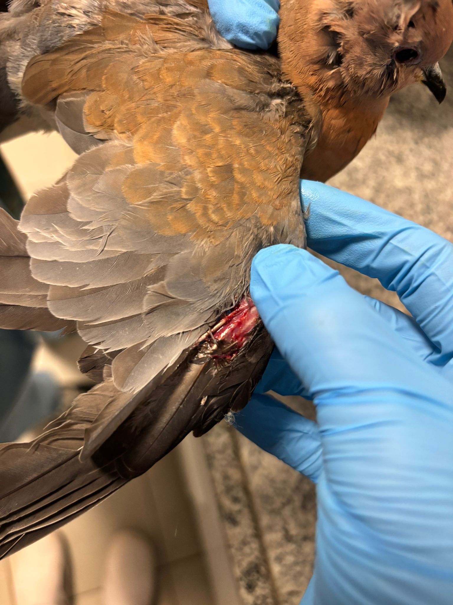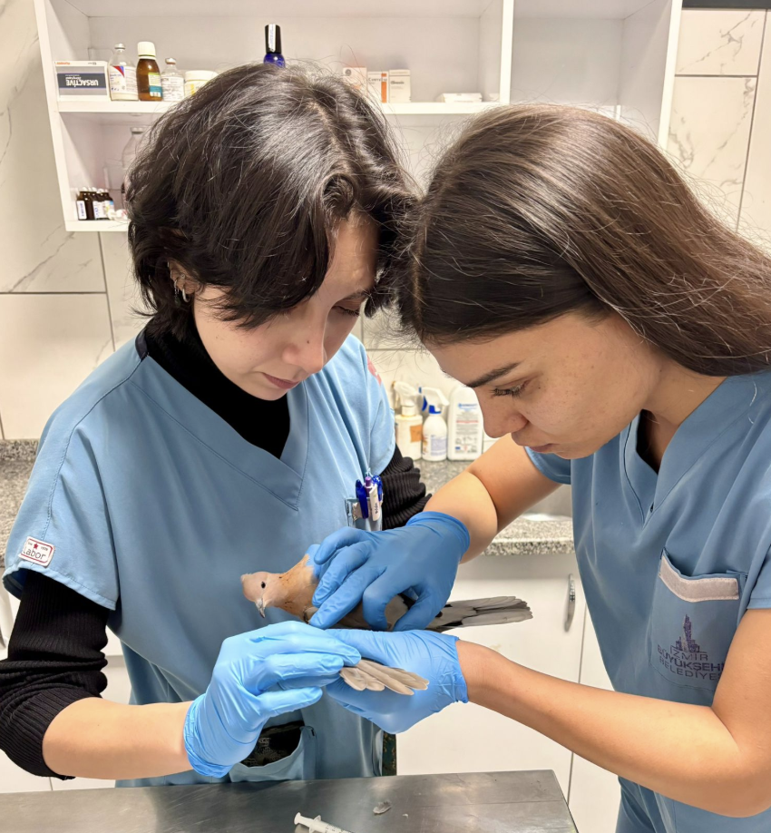 Ekipler, yaralı güvercine hassasiyetle yaklaşarak, onu Veteriner İşleri Dairesi Başkanlığı Hayvan Sağlığı Şube Müdürlüğü’ne bağlı Kültürpark Küçük Hayvan Polikliniği’ne getirdi. Veteriner hekimler, güvercine hemen müdahale etti. Güvercinin sağ kanadında açık yara ve sağ göz çevresinde travmatik bulgular tespit edildi. Kırık olmadığı saptanan güvercinin yaraları temizlenerek tedavisi yapıldı. Güvercin sağlığına kavuştuktan sonra Doğa Koruma ve Milli Parklar İzmir Şube Müdürlüğü’ne teslim edilecek.