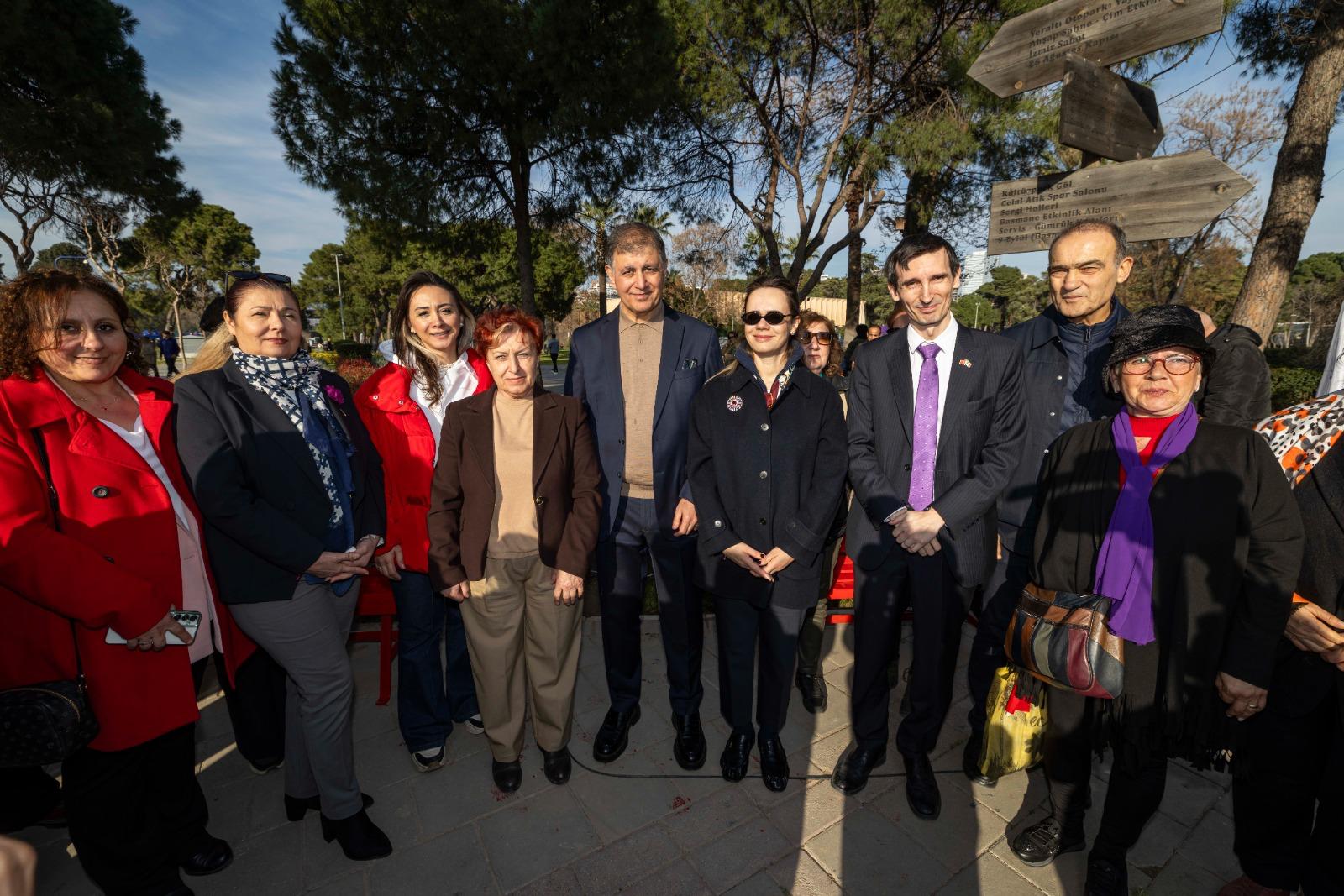 Konuşmaların ardından Başkan Tugay, eşi Öznur Tugay ve Daniele Bianchi bankı kırmızıya boyadı. Etkinlikte İzmirli kadınlar da farkındalık çalışmasına katılarak kadına yönelik şiddete karşı mesaj verdi. Başkan Tugay ve eşi Öznur Tugay, programın sonunda kadınlarla sohbet ederek hatıra fotoğrafı çektirdi.