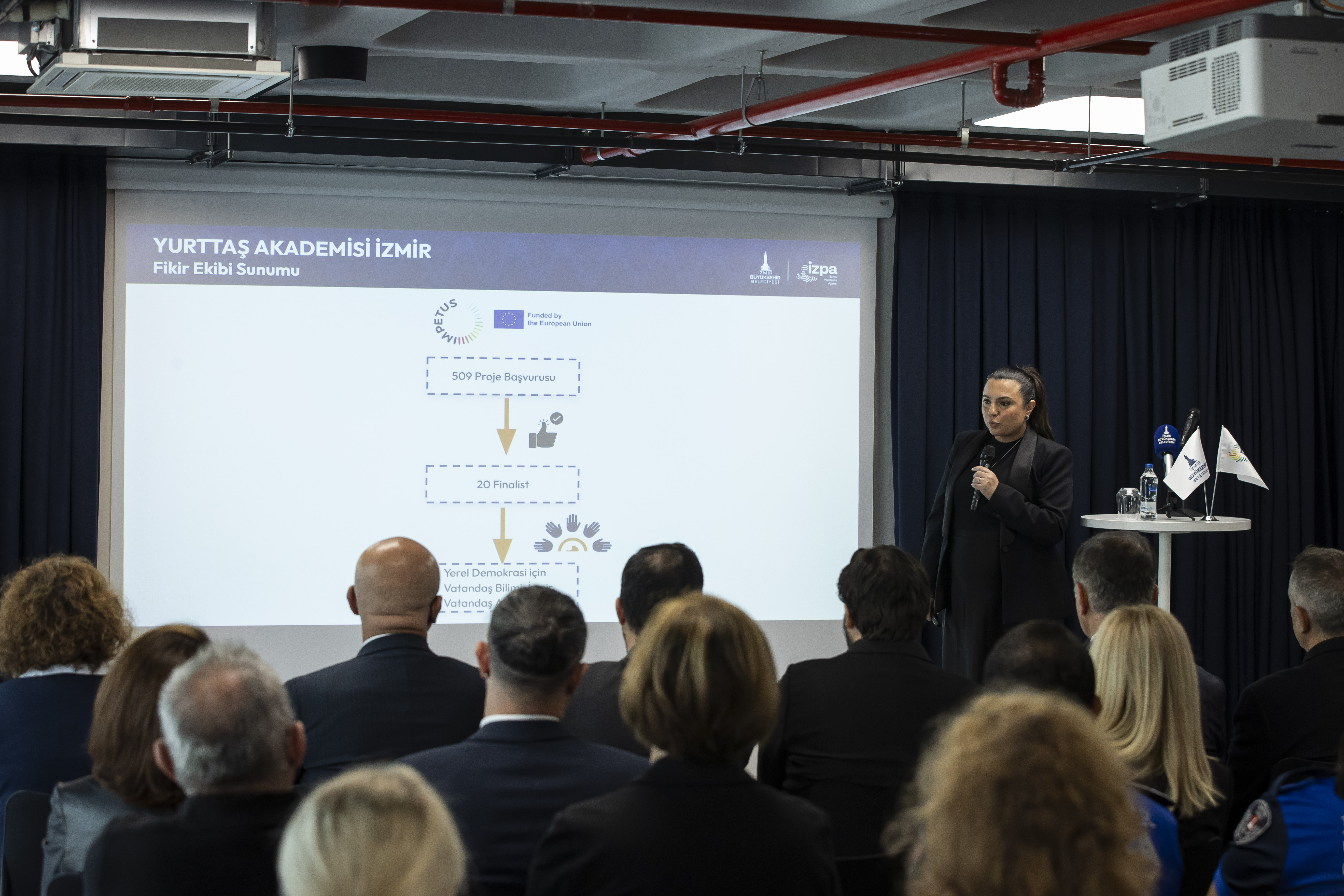 Tanıtım toplantısında sadece bir projeyi duyurmak için değil, İzmir’in demokrasi yolculuğunda yeni bir sayfa açmak için bir araya gelindiğini belirten Başkan Tugay, “Avrupa Birliği destekli IMPETUS Projesi kapsamında hayata geçirdiğimiz Yurttaş Akademisi - Kent Denetçileri Programı, artık kent yönetiminin sadece kurumların işi olmadığını, bu şehrin gerçek sahipleri olan yurttaşlarla birlikte yürütüleceğini ilan eden çok önemli bir adımdır. Bu proje, Avrupa genelinde başvuran 509 girişim arasından seçilen 20 projeden biri ve Türkiye’den bu programa kabul edilen tek büyükşehir belediyesi İzmir. Bu hepimiz için hem büyük bir gurur, hem de büyük bir sorumluluktur” ifadelerini kullandı.
