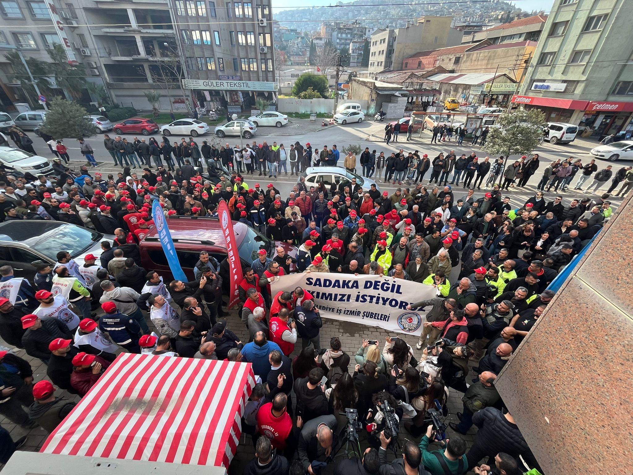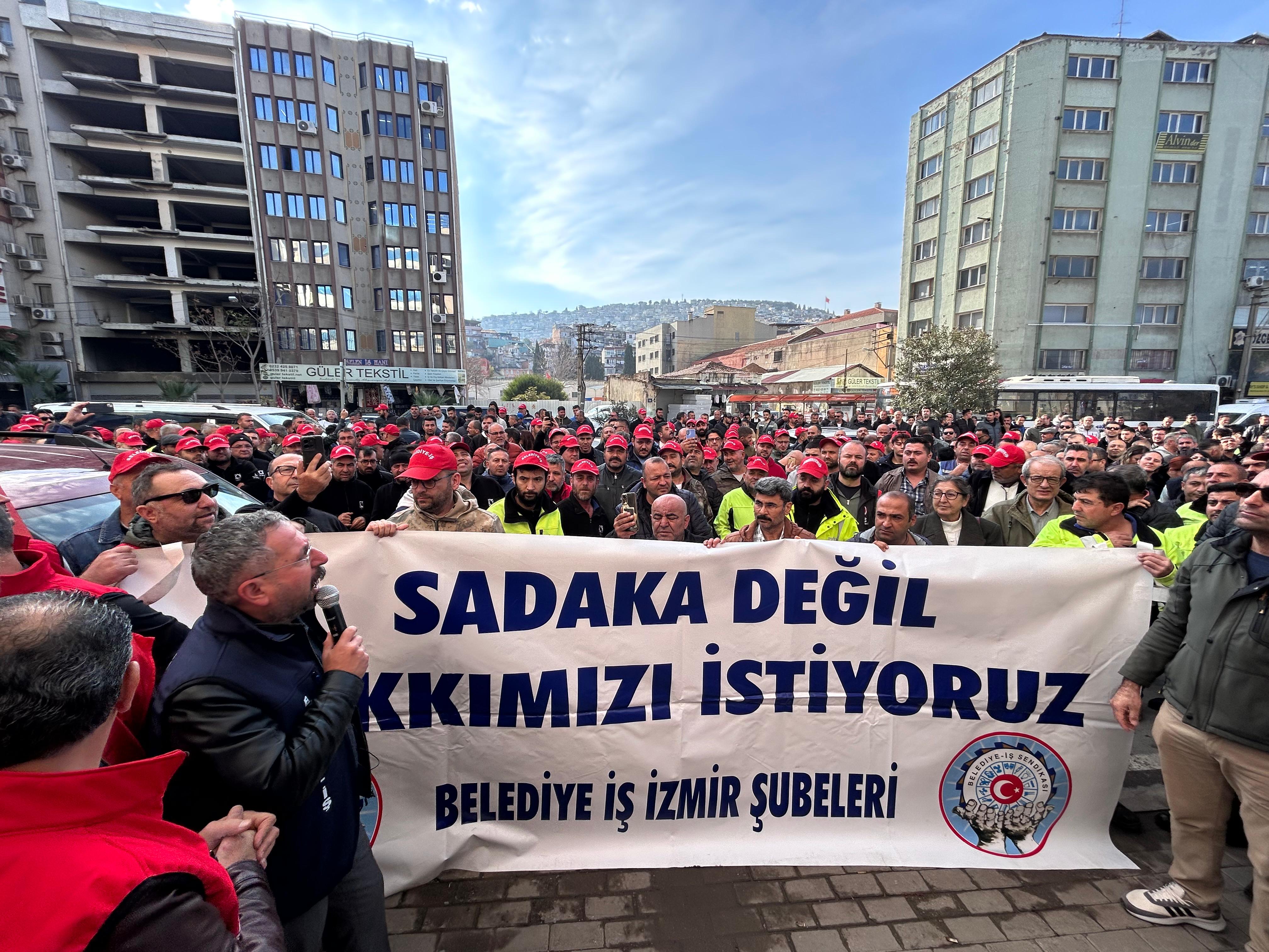 İzmir Büyükşehir Belediyesi iştiraklerinde örgütlü Belediye İş Sendikası 1,2 ve 3 No'lu şubeleri eylem gerçekleştirdi. Basın açıklamasını okuyan Belediye İş İzmir 2 No'lu Şube Başkanı Savaş Atalay, "Bu kentin sözünü yuttuğu emekçilere ücretlerini tam ve zamanında ödemek hem yasal hem insani görevinizdir. Biz sizden fazlasını değil, yalnızca ödenmesi gerekeni istiyoruz” dedi.