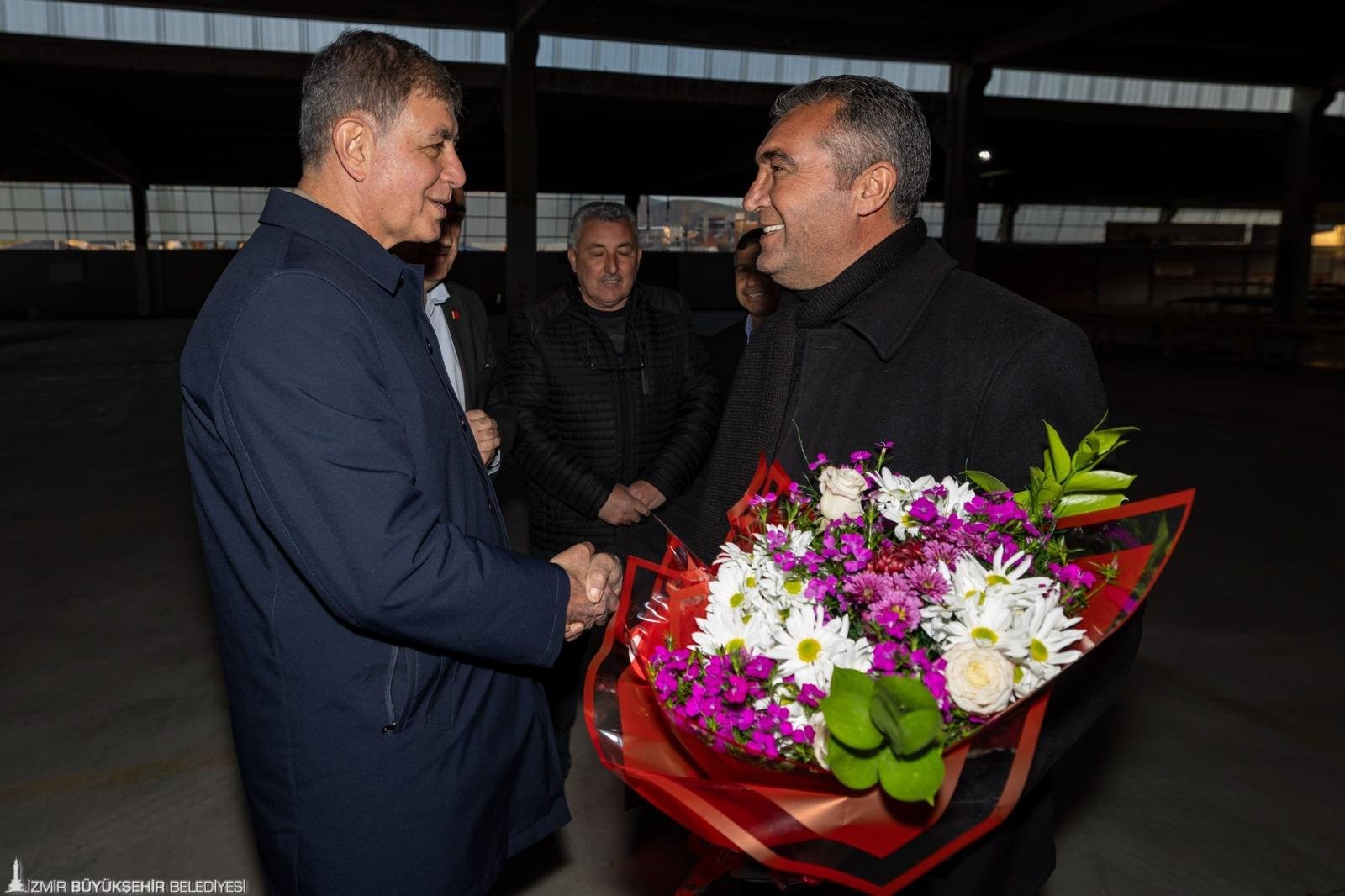 İftar öncesi alana gelen Başkan Tugay, masaları tek tek dolaşıp Menemenlilerle selamlaştı; çocuklar ve gençlerle fotoğraf çektirdi, çiçeklerle karşılandı.