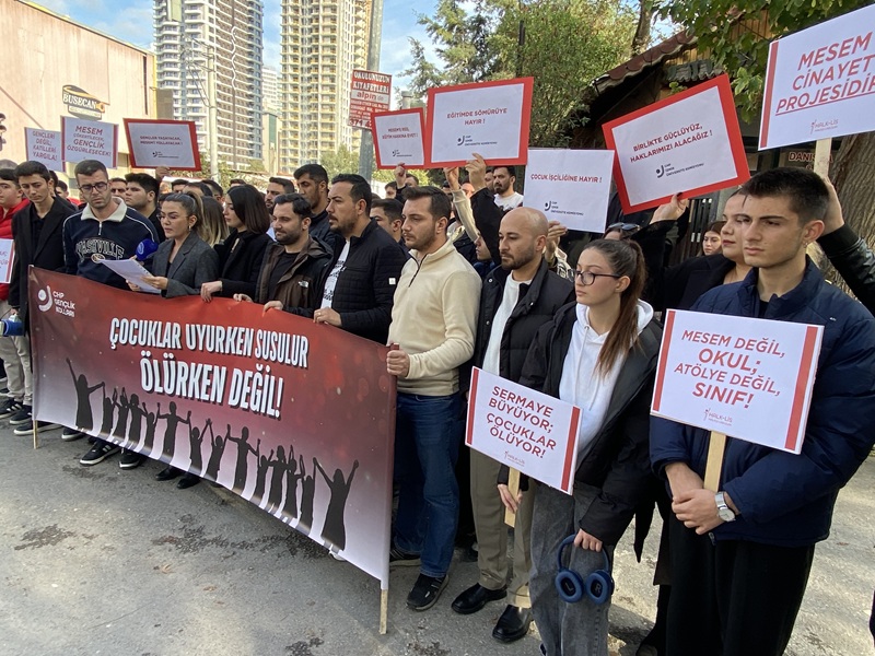 Türkiye genelinde CHP Gençlik Kollarının eş zamanlı yaptığı basın açıklamasını İzmir’de CHP İzmir İl Gençlik Kolları Başkanı Ruhsar Selis Çelik okudu. Açıklamada “Sayın Bakan’ın bakanlık yaptığı dönem içerisinde MESEM’lerde hayatını kaybeden çocuk sayısı 16. Bu, iktidar için yalnızca bir sayı olabilir ama bizim için değil. Onlar bizim her sabah aynı güneşe uyandığımız, aynı sokaklarda yürüdüğümüz, aynı hayalleri paylaştığımız kardeşlerimiz” sözlerine yer verildi.