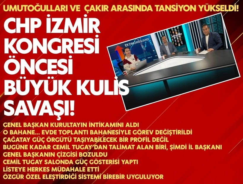 NEO Haber ekranlarında yayınlanan “Gündeme Bakış” programında gazeteciler Mithat Umutoğulları ve Onur Çakır, CHP İzmir İl Kongresi öncesinde yaşanan kritik gelişmeleri masaya yatırdı. Programda, Çağatay Güç’ün adaylığı, Şenol Aslanoğlu’nun devre dışı bırakılması, Cemil Tugay’ın etkisi ve Özgür Özel’in rolü üzerine çarpıcı iddialar ortaya atıldı.