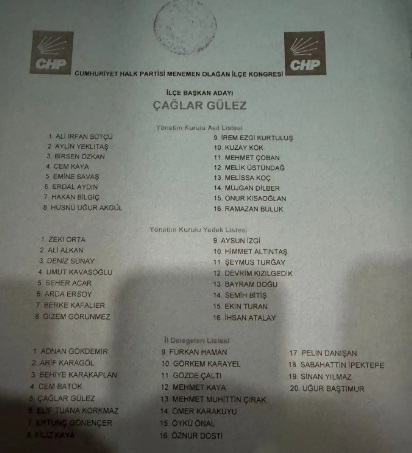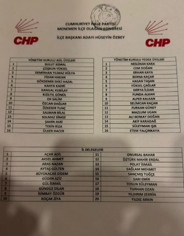 CHP Menemen İlçe Kongresi gerçekleştirildi. Kongrede mevcut İlçe Başkanı Hüseyin Özbey ile Çağlar Gülez yarıştı. Özbey 240 oy alarak güven tazelerken, Gülez ise 140 oyda kaldı.
