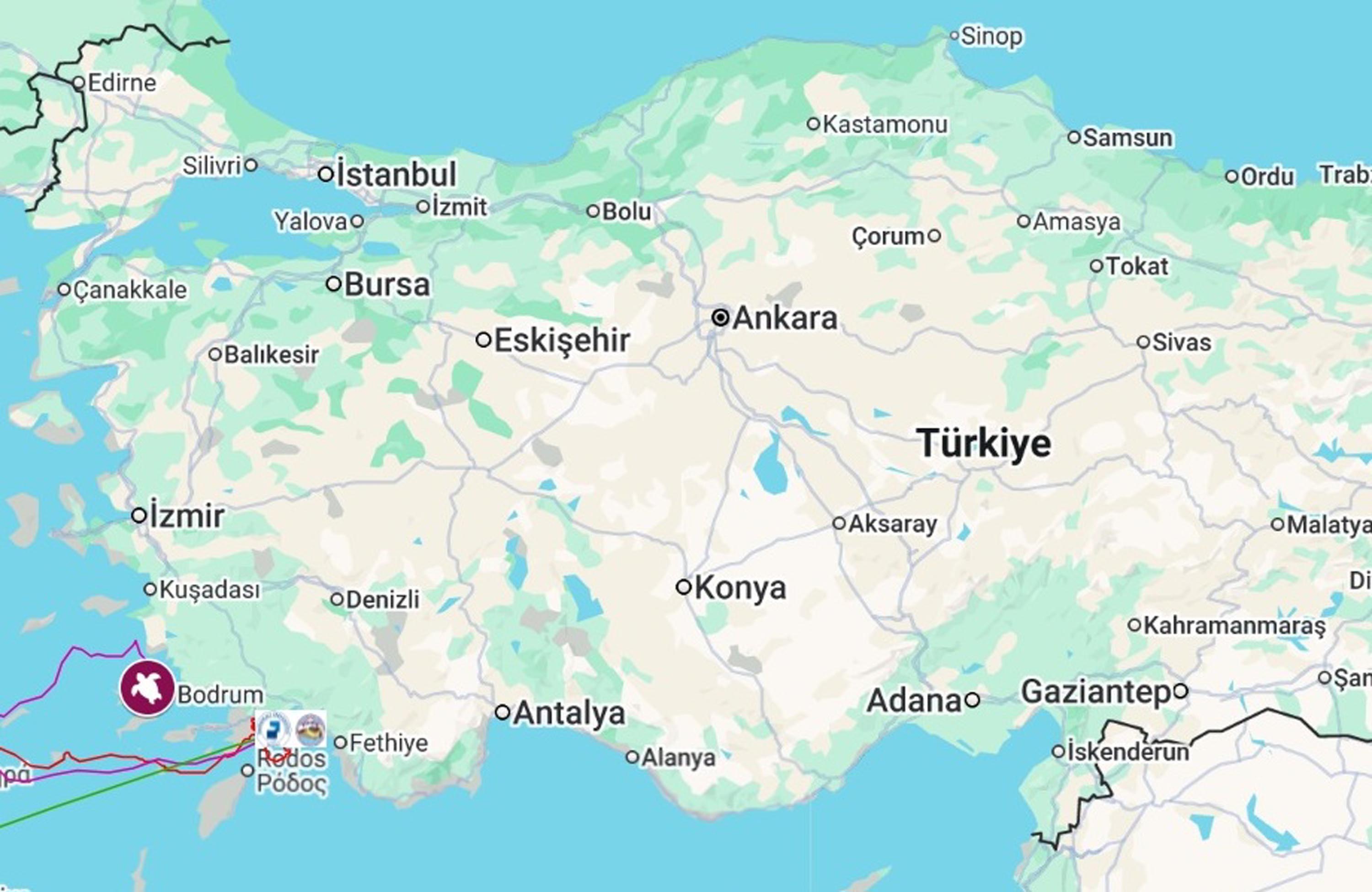Muğla'nın Ortaca ilçesinde yaralı bulunup tedavi edildikten sonra 2019'da denize bırakılan caretta caretta 'Tuba', yuva yapmak için yıllar sonra Dalyan'a döndü. Takip cihazı yenilenen Tuba, çıktığı ikinci dünya turunda 2 ayda 7 bin 500 kilometre yol katetti.