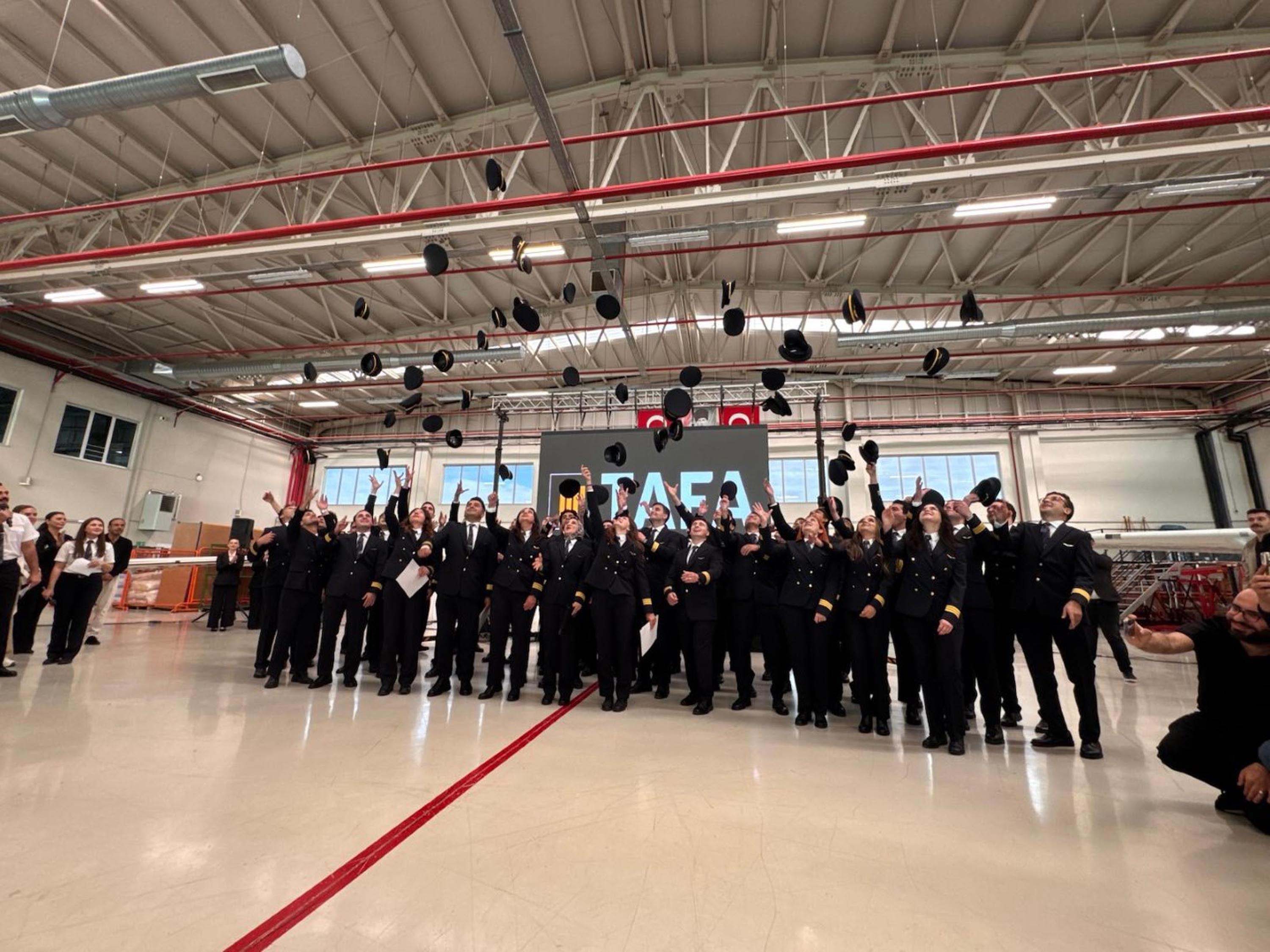 TAFA Genel Müdürü Fatih Ünalan da "TAFA olarak 2005 yılında çıktığımız bu yolculukta bugün 6 merkezde hizmet veren, öğrenci ve çalışanlarımızla yaklaşık bin kişilik ekosistem oluşturmaktayız. An itibariyle 66 uçak 80 uçuş öğretmeni ve yıl sonunda 350 mezun kapasitesini yakalamış olacağız. 2026 yılında ise 100 üzeri uçakla dünyada en büyük 5 uçuş noktası arasına gireceğiz. Aynı yıl faaliyete girecek olan 9 bin 500 metrekare yeni eğitim kampüsümüzde gelişmiş simülatör alanları, modern derslikleri ve sosyal alanlarıyla sadece fiziksel kapasitemizi arttırmayacağız, eğitim kalitemizi ve geleceğe bakış açımızı da temsil edecektir. Bu başarılar ancak disiplinli bir çalışma, planlı bir büyüme ve en önemlisi uçuş emniyetinden asla taviz vermeyen bir anlayışla mümkün olabilirdi. Çünkü bizler ülkemizin bayrak taşıyıcısı Türk Hava Yolları'nın kurum kültürüne uyumlu pilotlar yetiştirme sorumluluğunu taşıyoruz. TAFA'dan mezun olmak yalnızca teknik yeterlilik anlamında değil aynı zamanda bayrağın değerlerini gökyüzüne taşımak anlamına gelmektedir. Kuruluşumuzdan bu yana yaklaşık 2 bin mezunumuzun yüzde 9'u kadın pilotlarımızdan oluşmaktadır. Şu anda eğitim gören öğrencilerimizde ise bu oran yüzde 13'tür. Kadınların havacılıkta daha güçlü biçimde var olmasının toplumsal gelişim açısından önemli olduğunu düşünüyoruz" diye konuştu.