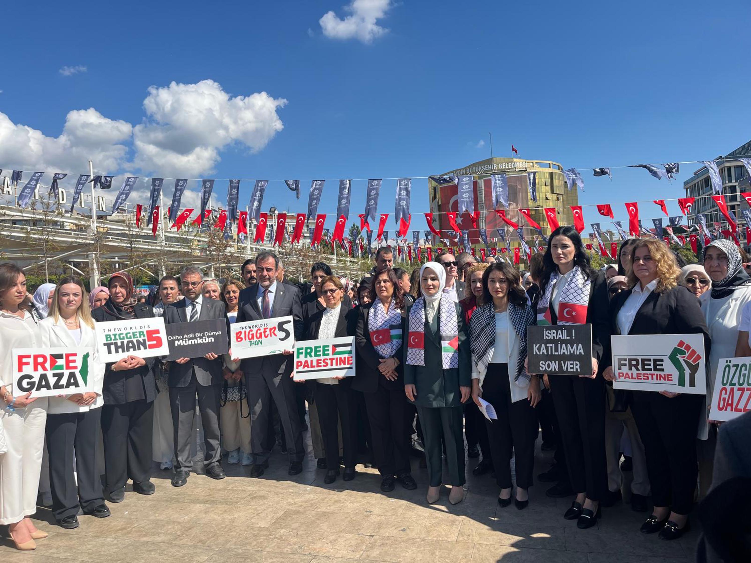 Programda konuşan AK Parti Aydın İl Kadın Kolları Başkanı Şahika Edremit, "Bugün kadınlar olarak Gazze'nin sessiz çığlığına ses olmak için el ele verdiğimizi tüm dünyaya göstermek adına meydanlardayız. Bugün 81 ilde kurduğumuz bu zincir, Gazze'de evlatlarını kaybeden anne-babaların zinciridir. Öksüz, yetim bırakılan çocukların zinciridir. İnsanlığını kaybetmeyen herkesin zinciridir. Biz; 'Yaralılarını mı kurtaracaktım, şehitleri mi taşıyacaktım ya da bir torba un mu bulmaya çalışacaktım? Yemin ederim eve tek bir torba un getirip, çocuklarımın karnının doyacağını bilsem, ölüme razı olurum' diyen Gazzeli annenin sesi olmak için, bu sesi dünyaya duyurmak için buradayız" dedi.