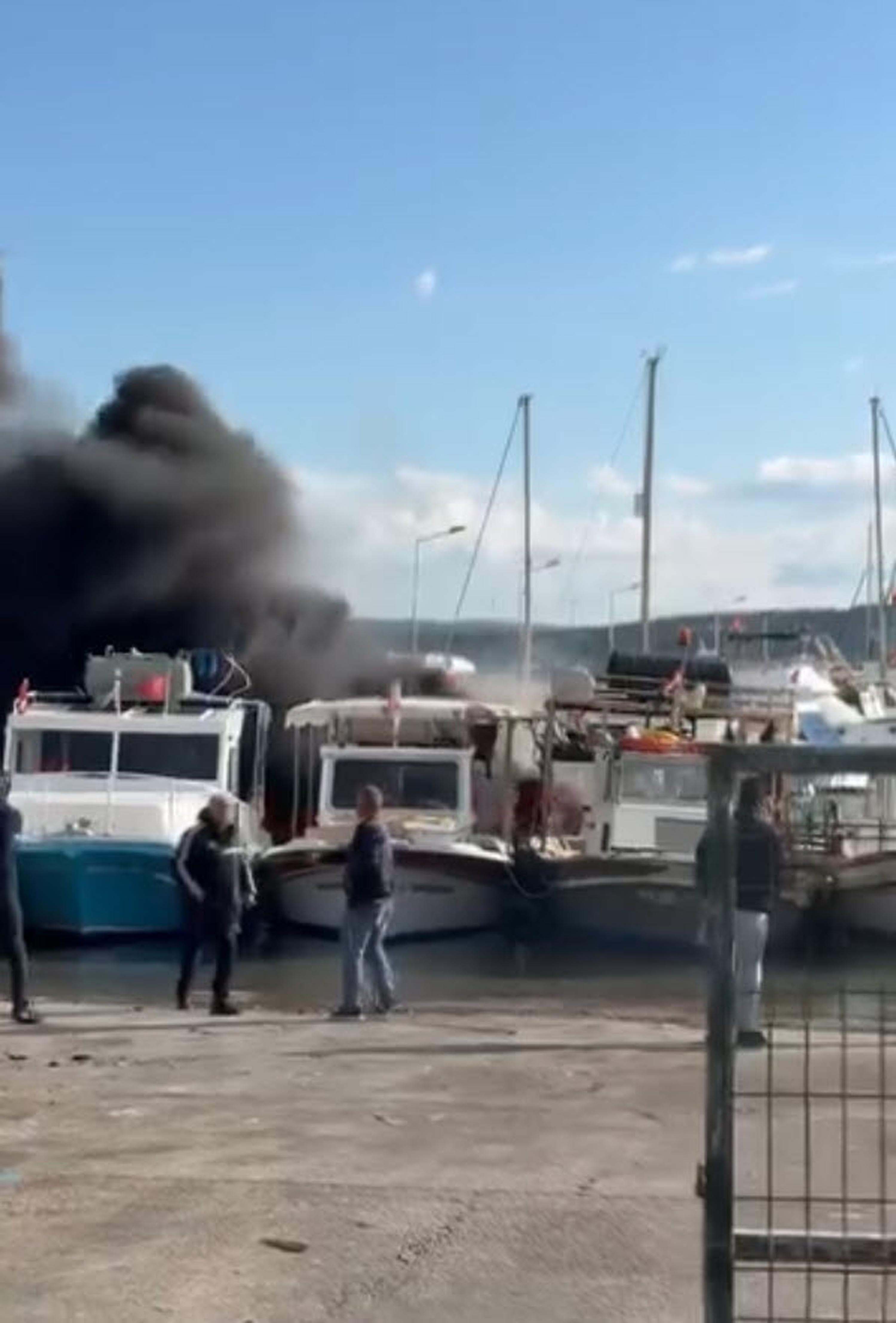 Yıldız Burnu'ndaki balıkçı barınağında bulunan bir teknede, saat 11.30 sıralarında yangın çıktı. Rüzgarın etkisiyle büyüyen yangın, kısa sürede yanındaki 6 tekneye daha sıçradı.