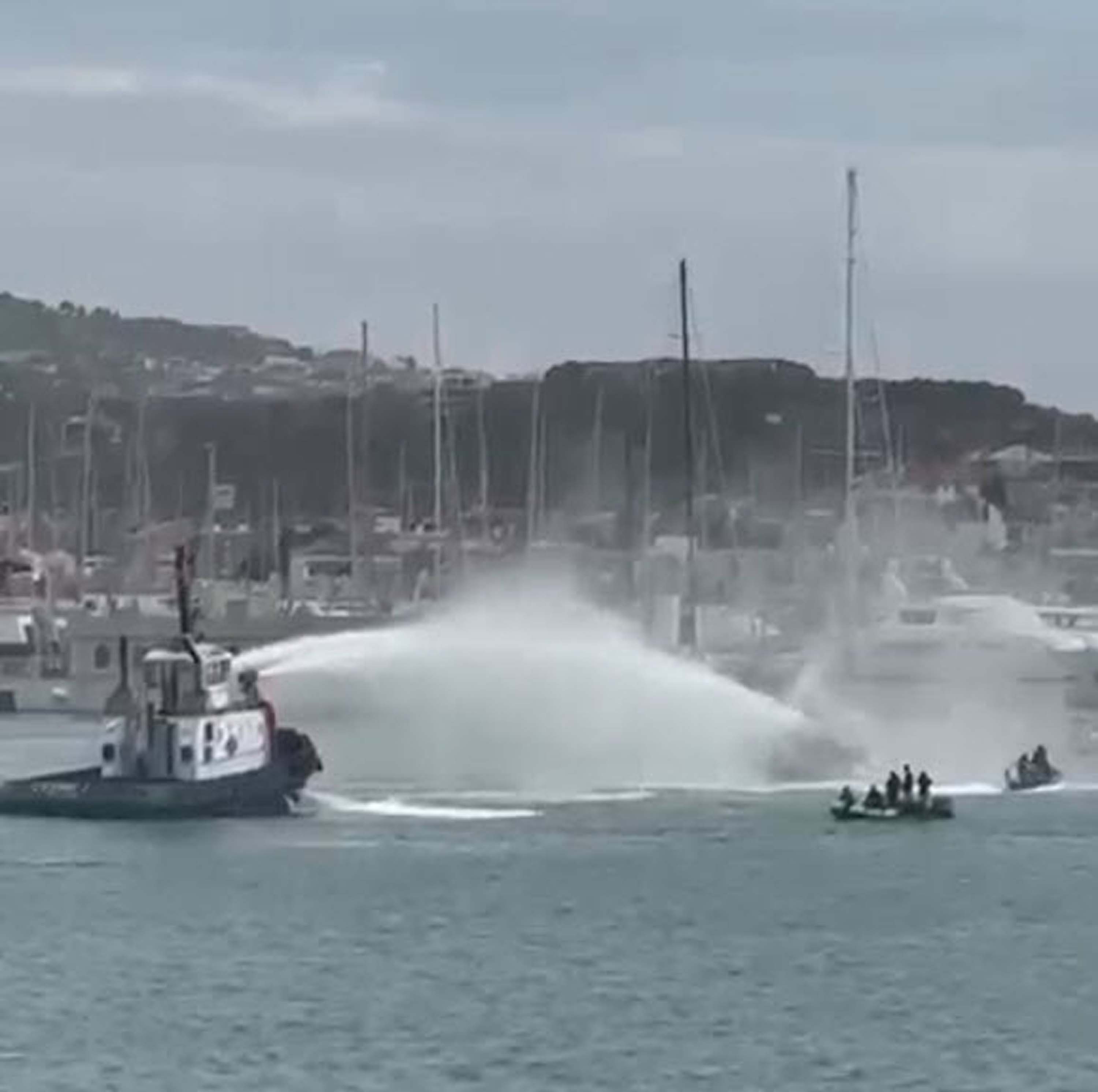 İhbar üzerine bölgeye sevk edilen deniz polisi ekipleri, çevrede önlem aldı. Limandan gelen römorkörün müdahalesiyle yangın kısa sürede söndürüldü.