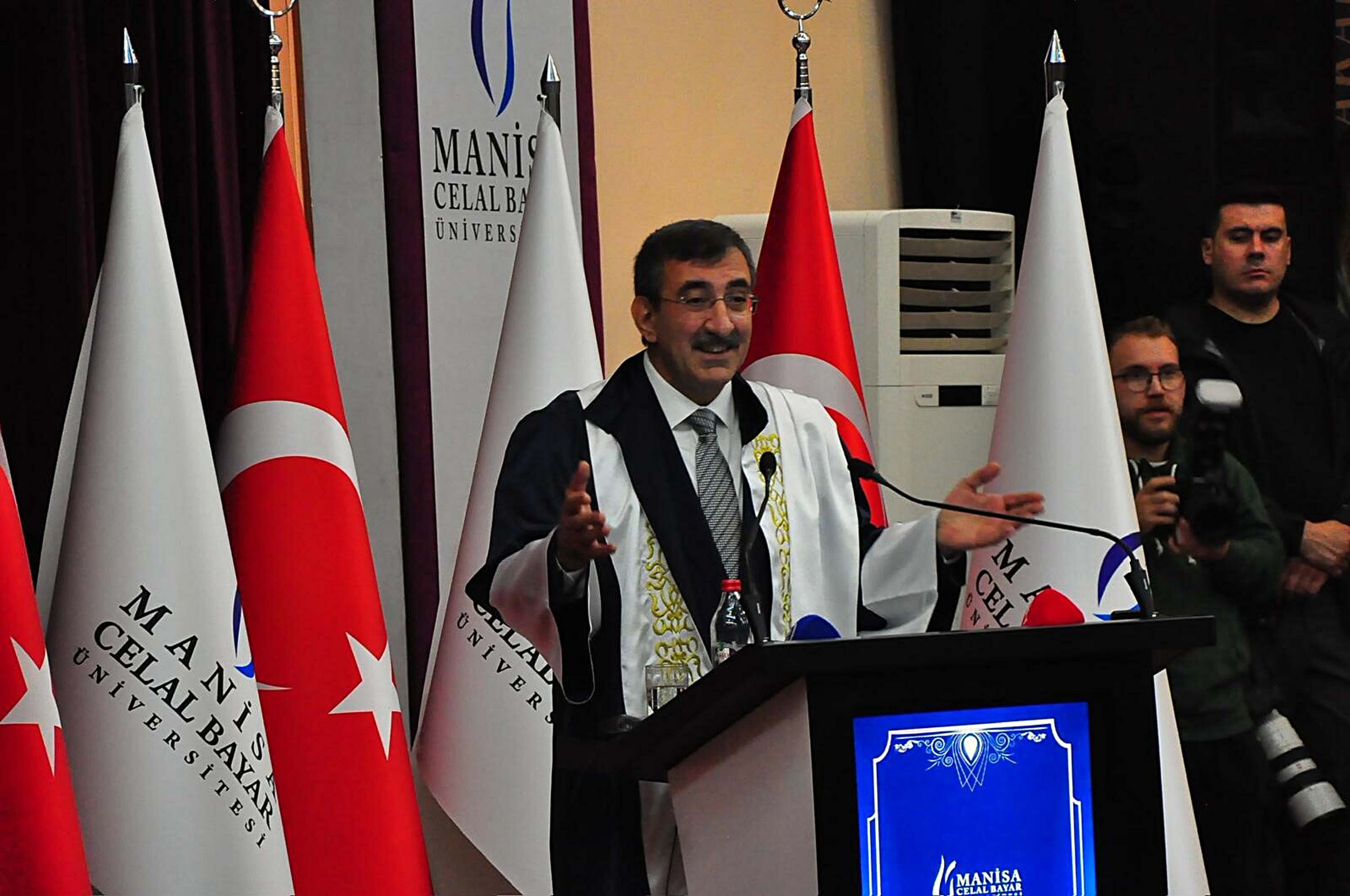 Cumhurbaşkanı Yardımcısı Cevdet Yılmaz, Manisa Celal Bayar Üniversitesi 2025-2026 Akademik Yılı Açılış Töreni’ne katıldı. Törene; Cumhurbaşkanlığı Genel Sekreteri Hakkı Susmaz, Manisa Valisi Vahdettin Özkan, TBMM AK Parti Grup Başkanvekili ve Manisa Milletvekili Bahadır Yenişehirlioğlu, AK Parti Manisa Milletvekilleri Murat Baybatur, Ahmet Mücahit Arınç, Tamer Akkal, Manisa Büyükşehir Belediye Başkanı Besim Dutlulu, AK Parti Manisa İl Başkanı Süleyman Turgut, MHP Manisa İl Başkanı Cüneyt Tosuner, Manisa Celal Bayar Üniversitesi Rektörü Prof. Dr. Rana Kibar, akademisyenler ve öğrenciler katıldı. Törende Cumhurbaşkanı Cevdet Yılmaz'a üniversite senatosunun aldığı kararla Siyaset Bilimi ve Kamu Yönetimi alanında fahri profesörlük ünvanı verildi.