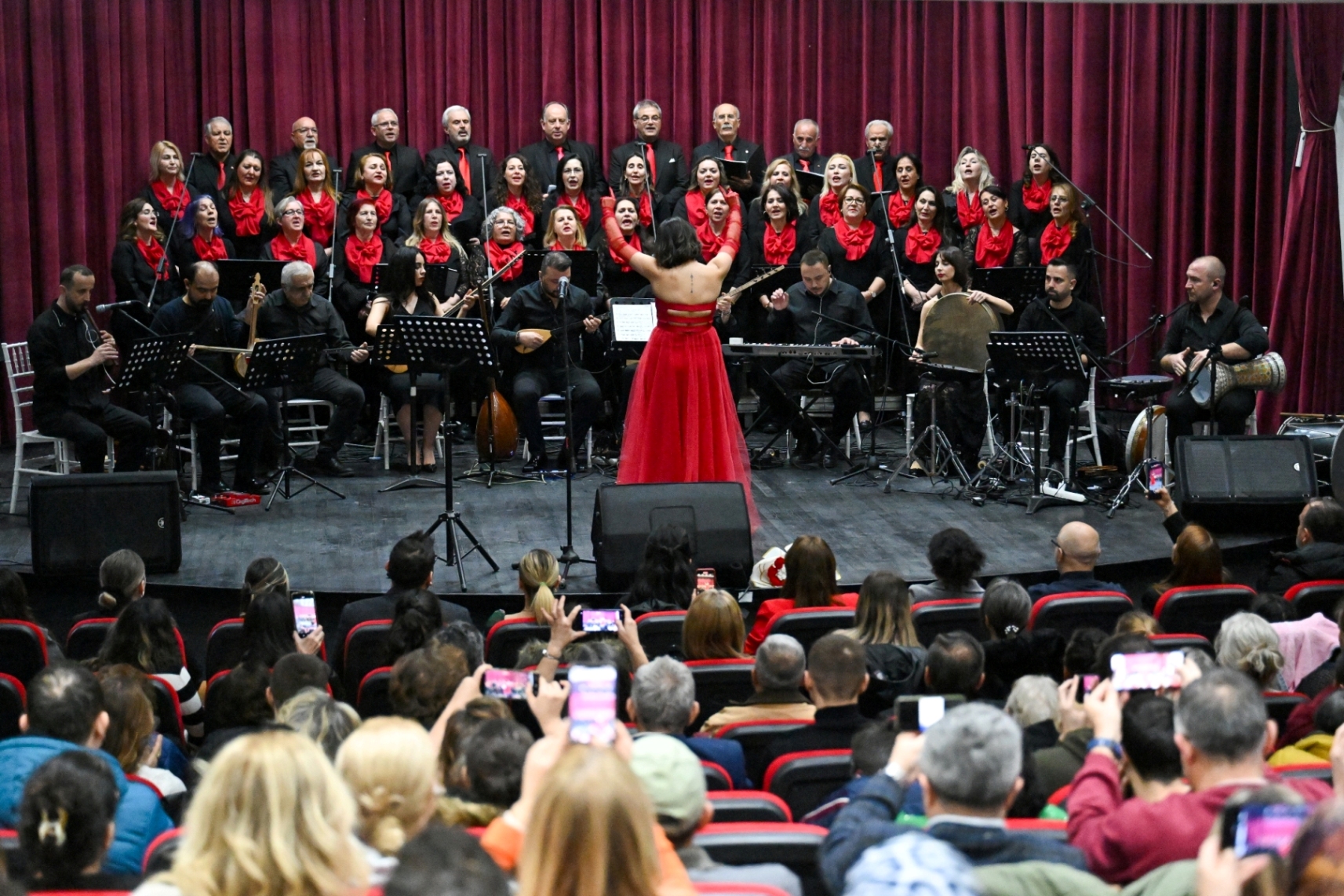 Bornova Belediyesi STK Türk Halk Müziği Korosu, Şef Selda Kesgi yönetiminde sahne aldı. “Açıl Ey Ömrümün Varı”, “Gova Gova İndirdiler Yazıya”, “Dumanı da Vardır Şu Dağların Başında”, “Ah Bir Ataş Ver”, “Amman Avcı Vurma Meni” ve “Damat Halayı” gibi koro eserleri büyük alkış aldı.