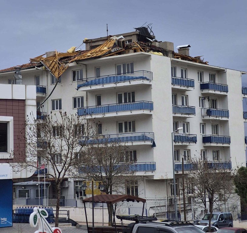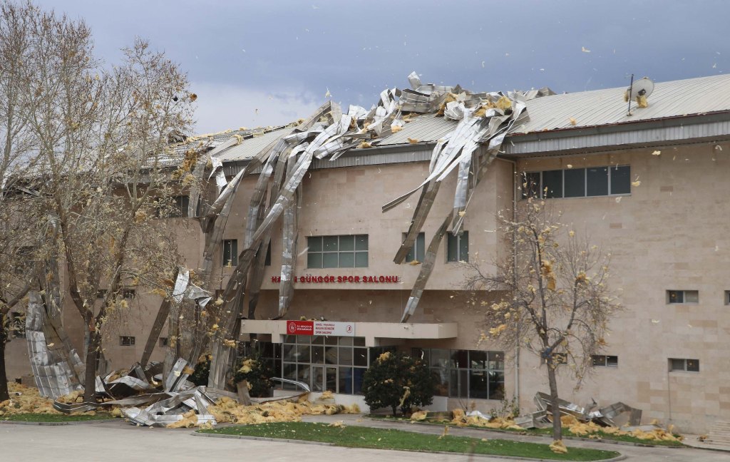 Dokuzkavaklar Mahallesi'ndeki Hasan Güngör Kapalı Spor Salonu'nun çatısı da bahçesine uçtu, parçalar etrafa yayıldı. İtfaiye ve polis ekipleri, çevrede güvenlik önlemi aldı. Halı sahayı çevreleyen tel örgüler devrildi.