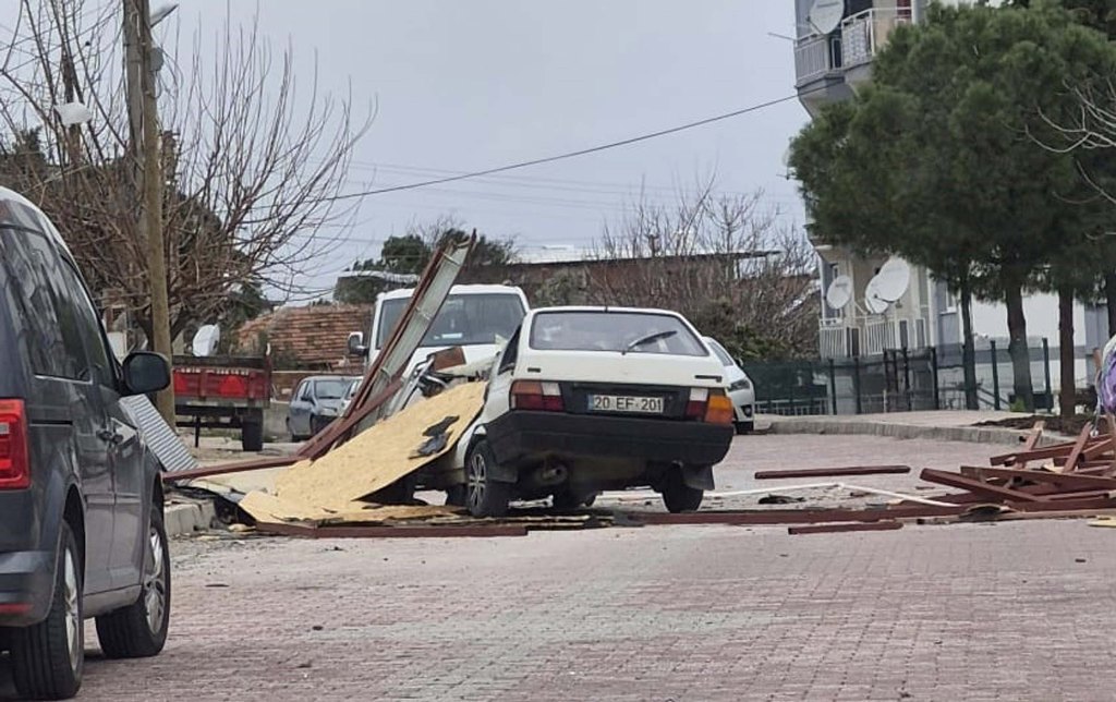 Denizli'de kuvvetli fırtına hayatı olumsuz etkiledi. Zaman zaman hızı 88 kilometreye kadar çıkan fırtına nedeniyle çatılar uçtu, ağaçlar devrildi.