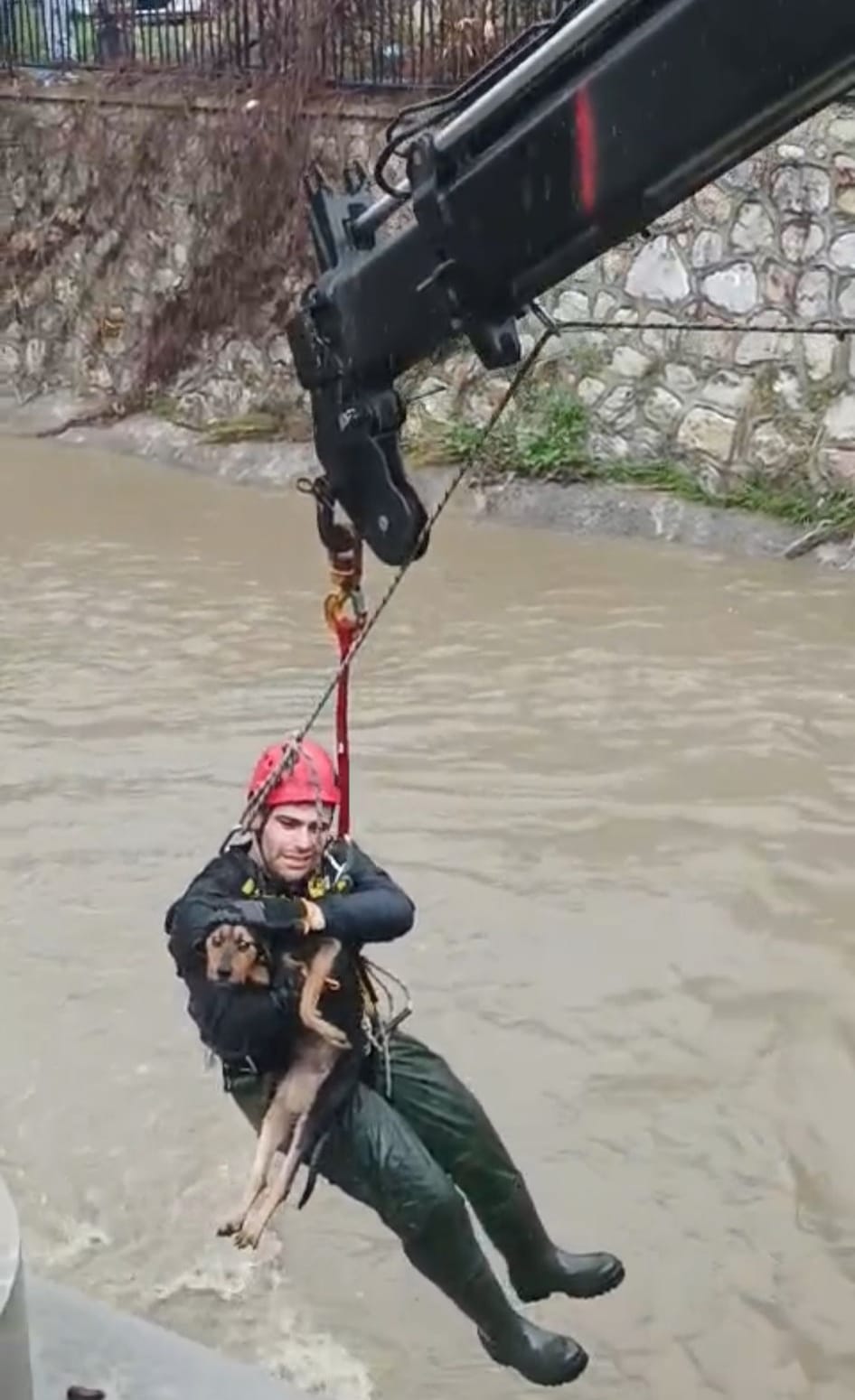 Olay yerine kısa sürede ulaşan ekipler, dere yatağında mahsur kalan köpeği kurtarmak için çalışma başlattı. Yaklaşık 10 dakika içerisinde bulunduğu yerden güvenli bir şekilde çıkarılan köpeğin sağlık durumunun iyi olduğu öğrenildi.