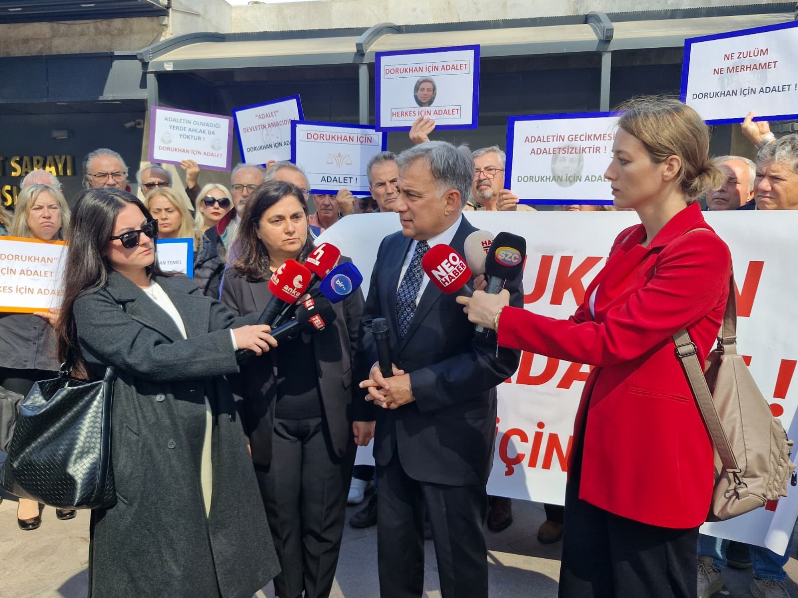 Tanığın ardından söz verilen Ethem Büyükışık, oğlu Dorukhan'ın cinayete kurban gittiğini ve sahte evrakla cinayetin üzerinin kapatılmaya çalıştığını söyleyerek, "Sanıklar olayın ciddiyetinin farkında değiller. Herkes birbirini suçluyor, herkes olayı üzerinden atmaya çalışıyor. Oğlumun boğazında bıçak yarası olmayan kesik izi var ama görevliler, 'Ben görmedim 'diyor" ifadelerini kullandı.