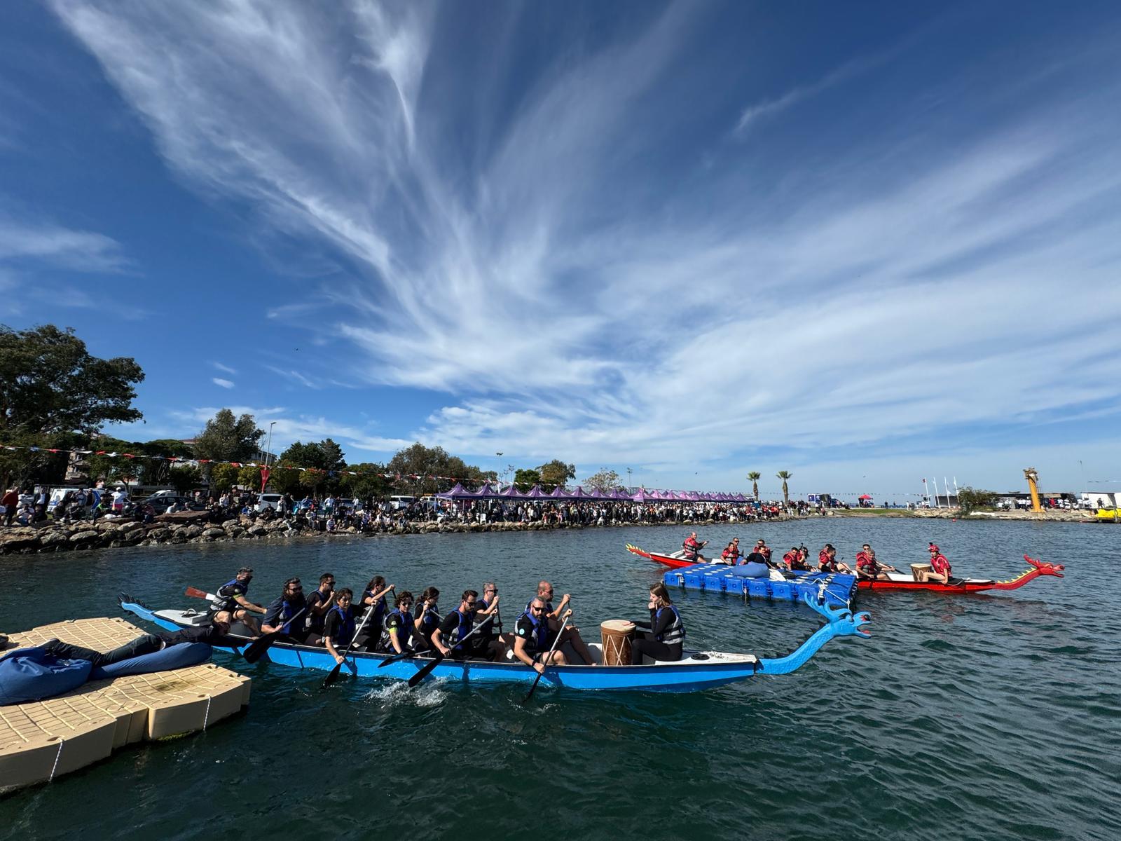 İzmir Büyükşehir Belediyesi tarafından bu yıl üçüncüsü düzenlenen Dragon Tekne Yarışması, renkli görüntülere sahne oldu. Belediye çatısı altındaki birimlerin İzmir Körfezi’nde kürek çektiği yarış, izleyenlere de heyecanlı anlar yaşattı.