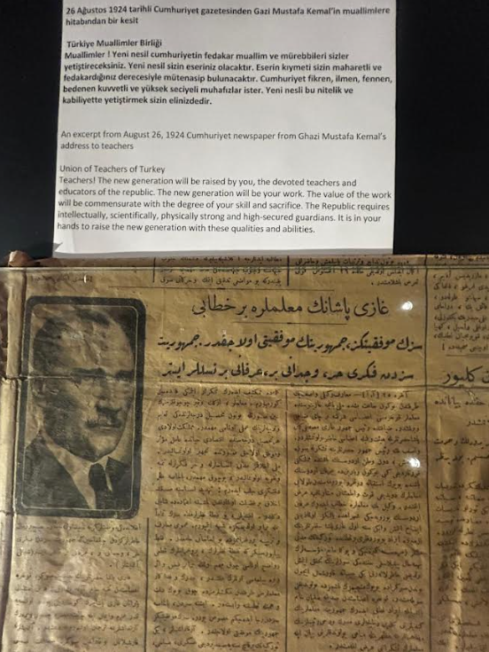 Sergide ayrıca, Başöğretmen Atatürk’ün öğretmenlere seslendiği metnin yayımlandığı 26 Ağustos 1924 tarihli Cumhuriyet Gazetesi’nin orijinal nüshası ile dönemin öğretmenlerine ait orijinal sicil defterleri de yer alıyor.