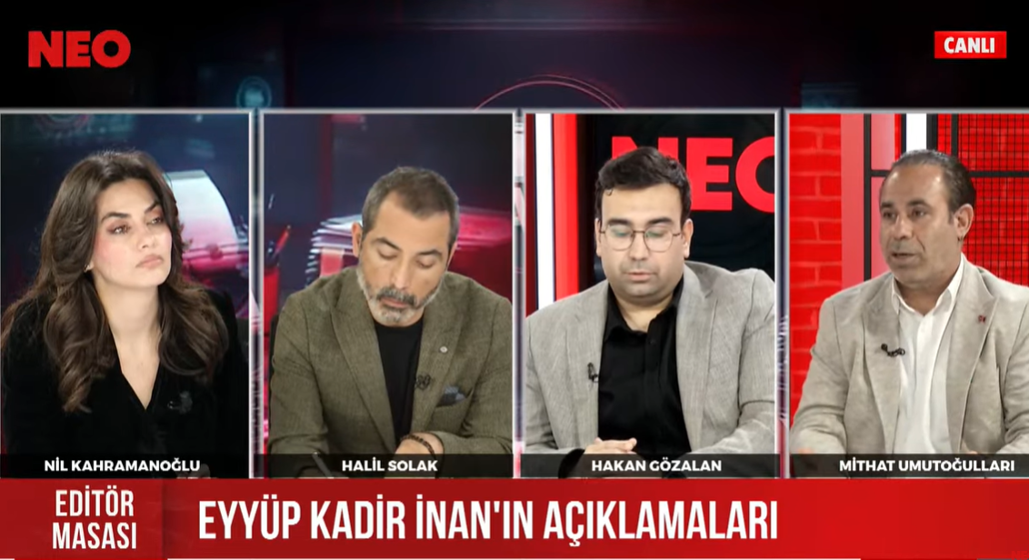 Gazeteci Nil Kahramanoğlu’nun moderatörlüğünü yaptığı Editör Masası programında, İzmir Büyükşehir Belediyesi mülkiyetinde bulunan üç taşınmazın Vakıflar Genel Müdürlüğü’ne devri ve AK Parti cephesinden gelen sert açıklamalar masaya yatırıldı. Programda gazeteciler Mithat Umutoğulları, Halil Solak ve Hakan Gözalan dikkat çeken değerlendirmelerde bulundu. Tartışmanın odağında, AK Parti Genel Sekreteri Eyyüp Kadir İnan’ın İzmir Büyükşehir Belediye Başkanı Cemil Tugay’a yönelik “yalancı” ve “cibilliyetsiz” ifadeleri yer aldı. Umutoğulları, "Şimdi siz iktidar partisini bu kadar yağlar, ballarsanız, bu kadar iktidar partisiyle haşir neşir olursanız. Kendi partinizin milletvekillerinden daha çok onları pohpohlarsanız, kendi il başkanından daha fazla onların il başkanını görüşürseniz, akıbetiniz bu olur. Kucak açmışsınız dolayısıyla siz AK Parti’yi İzmir'le barıştırdınız. Yani Cemil Tugay bu hamlelerle AK Parti’yi İzmir'le barıştırdı." dedi.