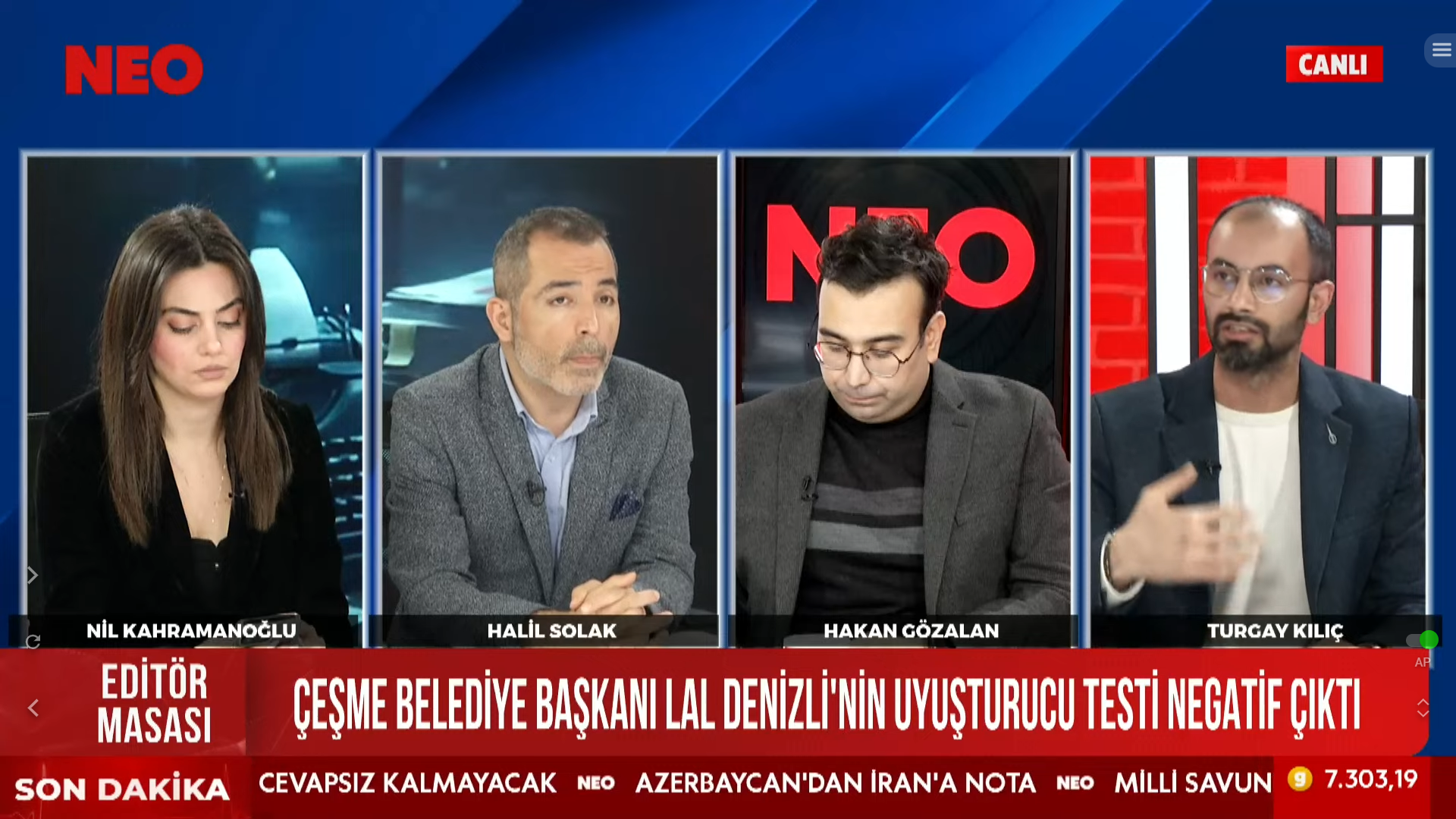Programda NEO TV Genel Müdürü Halil Solak, NEO TV Genel Yayın Yönetmeni Hakan Gözalan ve NEO TV muhabiri Turgay Kılıç, dikkat çeken değerlendirmelerde bulundu.