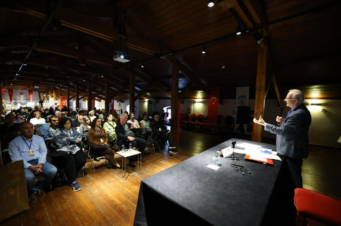 Selçuk Efes Kent Belleği’nde devam eden etkinliğin ikinci gününün ilk oturumunda, Doç. Dr. Devrim Sezer ve Doç. Dr. Murat Satıcı, “Demokrasi ve Sorunları” başlığı altında demokrasi kavramını farklı boyutlarıyla değerlendirdiler.
