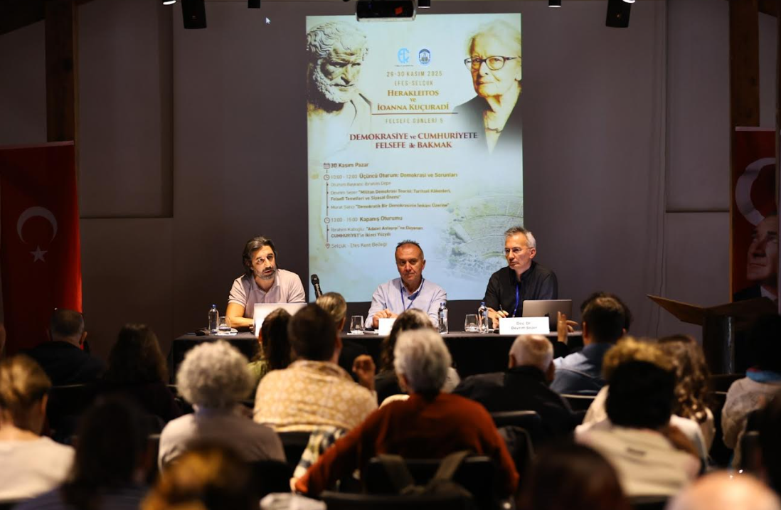 Efes Selçuk Belediyesi ve Türkiye Felsefe Kurumu iş birliği ile düzenlenen Herakleitos ve İoanna Kuçuradi Felsefe Günlerinin ikinci gününde, demokrasi ve adalet kavramları felsefi açıdan ele alındı.