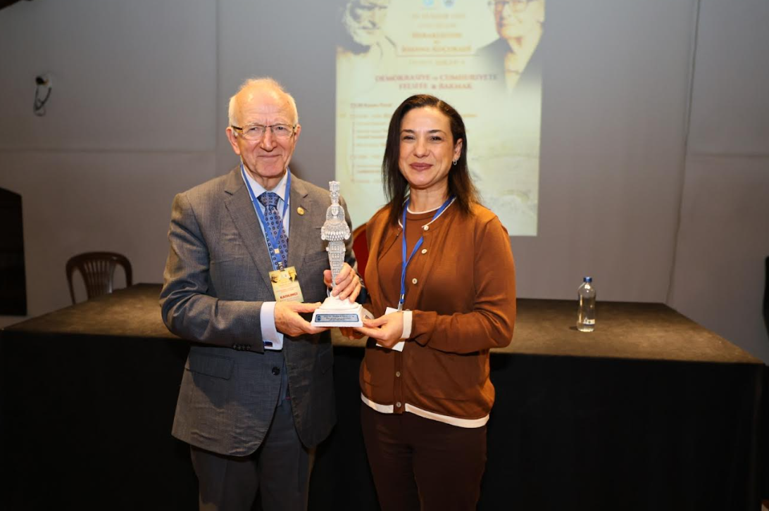 Etkinliğin onur konuğu olan İstanbul Barosu Başkanı Prof. Dr. İbrahim Kaboğlu, “Adalet Anlayışına Dayanan Cumhuriyetin İkinci Yüzyılı” başlıklı konuşmasında, demokrasinin amacının hak ve özgürlüklerin korunması olduğuna dikkat çekti. Kaboğlu, “1961 Anayasası’ndan itibaren önce hak ve özgürlükler düzenleniyor çünkü anayasayı biz hazırladık, devleti biz kurduk. Anayasacılar şöyle der: Devlet anayasa ile doğar, anayasa ile yaşar. Adalet, Türkiye Cumhuriyeti’nin dayanağıdır; adalet mülkün temelidir. Felsefecilerin bilmesi gereken husus, anayasaların ortak miras olduğudur. Anayasa, tüm siyasal örgütler, aktörler ve kamu kurumları için temeldir. Bunca baskıya ve anayasa dışılığa rağmen halkın çoğunluğu ‘Biz demokrasi istiyoruz’ diyor,” ifadelerini kullandı.