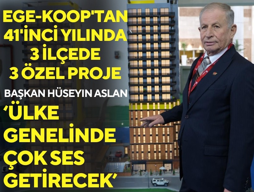 Ege-Koop, 41’inci yılında yeni projeleriyle gümbür gümbürgeliyor.Yeniliklerin öncüsü, kent mimarı, doğaya, insana saygının sembolü Ege-Koop’ un öyküsü; geçmişi geleceğine, dünü-bugününe-yarınına kefil olmaktır. Ege-Koop; İzmir’ in 14 ilçesinde 150 bin kişiyi ev sahibi yaptı, şimdi de3 yeni proje ile 41’inci yılında kentleşme ile ilgilihikaye yazarak, konut sektöründe yeni bir anlayışı başlatacak diyen;Ege-Koop Genel Başkanı Hüseyin Aslan, 41’inci yıla özel ilk projeninBornova-Çamdibi’nde kentsel dönüşüm bölgesindefark yaratacak ve örnek olacağını belirtti. Kapalı otoparkı ve yüzme havuzu, sosyal tesisleri ile birlikte 18 kattan oluşacak 15.Proje deofis, 1+1,2+1 tiplerden oluşacaktır.