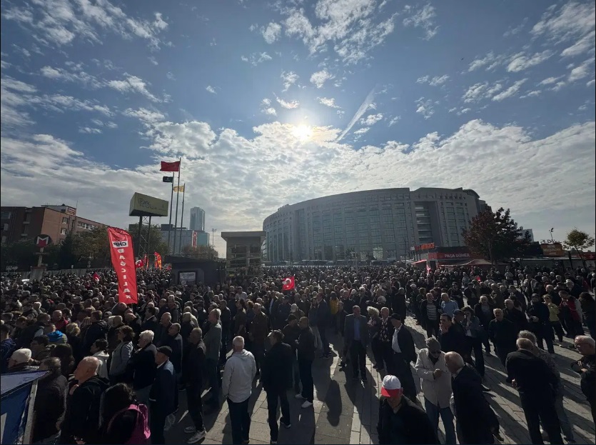Ekrem İmamoğlu'nun ifadesinin başlamasının beklendiği sıralarda, CHP lideri Özgür Özel, Çağlayan önünde toplanan yurttaşlara otobüsün üzerinden seslendi.