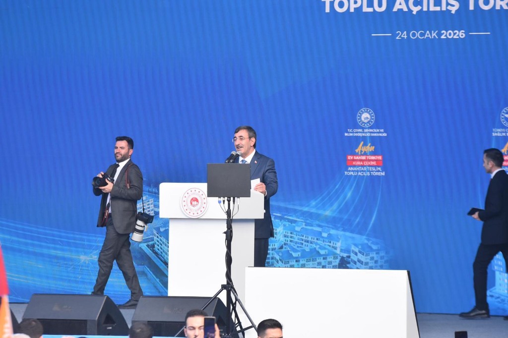 Cumhurbaşkanı Yardımcısı Cevdet Yılmaz ise Cumhurbaşkanı Recep Tayyip Erdoğan'ın eser ve hizmet siyasetinin liderliğini yaptığını belirtip, "Eğitimden sağlığa, ulaştırmadan konuta kadar birçok hizmetlere imza atıldı. Açılışı yapılacak tüm yatırımların Aydın'a hayırlı olmasını diliyorum. Merkezi idare ve büyükşehir el ele çok daha bereketli hizmetleri yapmaya devam edecek. Aydın'da kentsel dönüşüm, sosyal konut başta olmak üzere projelerle insanların refahını artırmaya devam edeceğiz. Tüm illerimiz bizim nazarımızda aynıdır, doğusuyla batısıyla, kuzeyiyle güneyiyle 86 milyon biriz, beraberiz, kardeşiz, hep birlikte Türkiye'yiz. İnşallah önümüzdeki dönem, terörün konuşulmadığı daha çok demokrasinin ve kalkınmanın konuşulduğu dönem olacak. Bölgesinde ve küresel düzeyde güçlü, etkili bir ülke olarak hem milletimizin de hem tüm mazlum halkların hakkını ve hukukunu savunmaya devam edeceğiz. Aydın'ın kalkınması, gelişmesi 'Türkiye Yüzyılı'na da büyük katkı verecektir" dedi.
