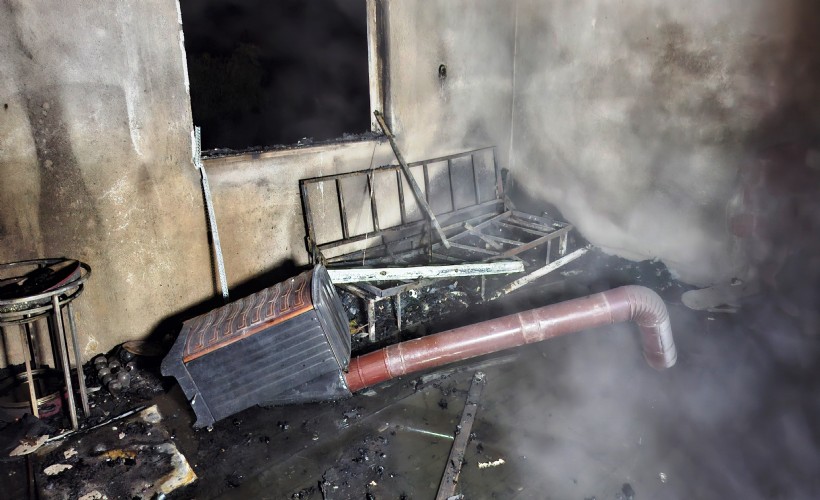 Evin yatak odasında çıkan yangını itfaiye ekipleri söndürdü