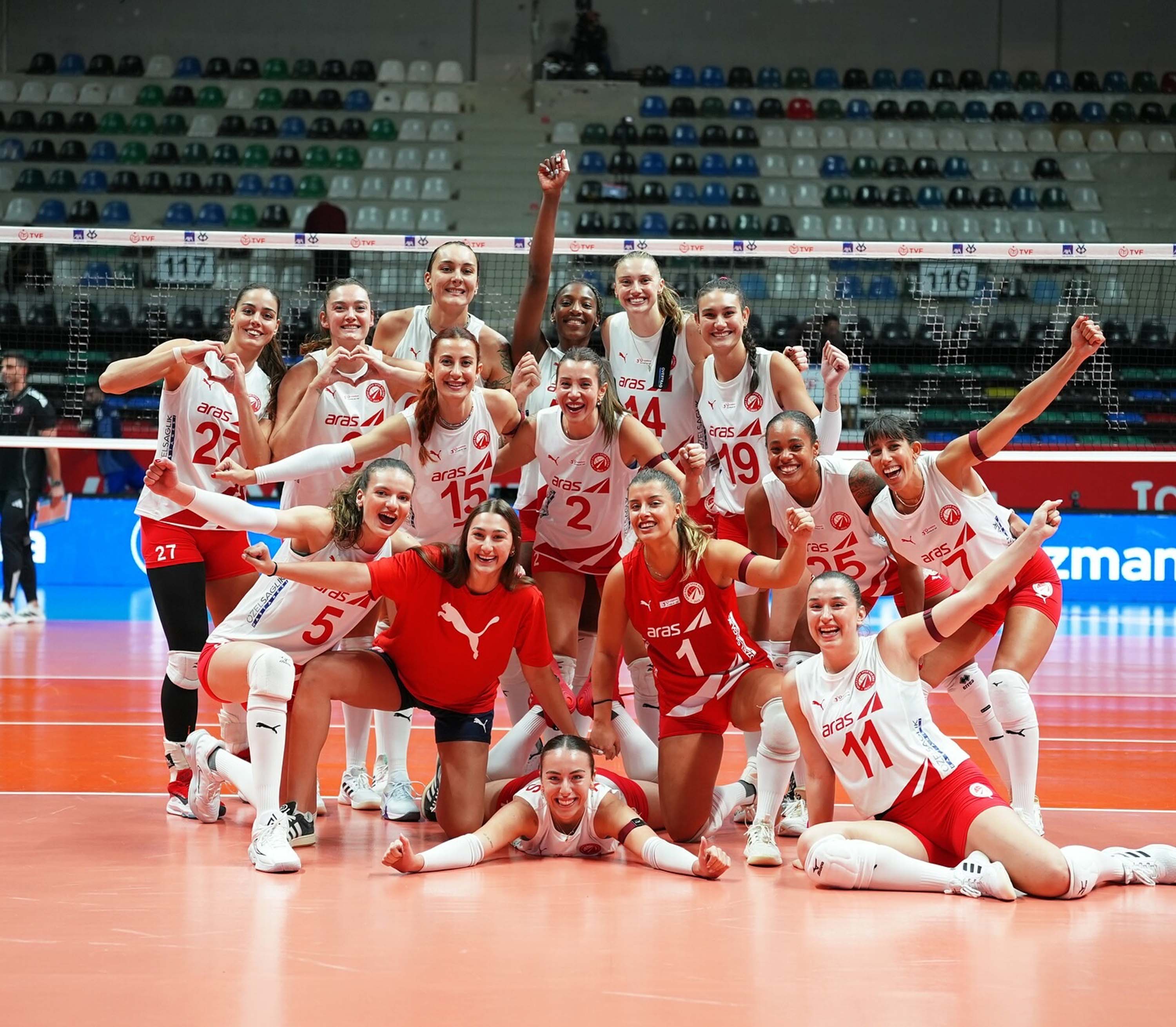Aras Spor ise Ankara'daki 1'inci Grup müsabakalarında Türk Havayolları'nı (3-1) ve Nilüfer Belediyespor'u (3-2) mağlup ederek zirveyi bırakmadı. İzmir temsilcisinden yapılan açıklamada, "Kulüp tarihimizde ilk kez Kupa Voley'de çeyrek finaldeyiz. İzmir, 13 sene sonra ilk kez Kupa Voley'de çeyrek finalde. Tüm neşemizle, hep birlikte yolumuza devam ediyoruz" ifadelerine yer verildi.