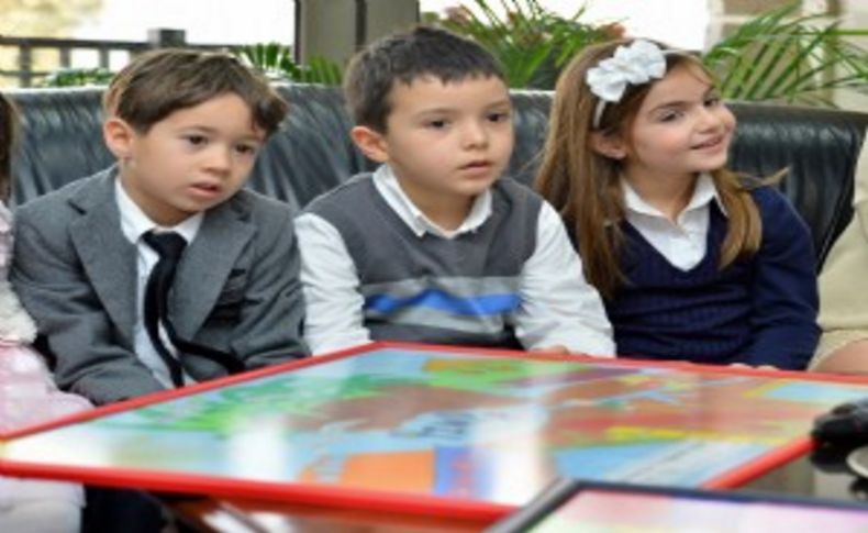 “İzmirli çocuk olmak” projesi için Başkan Aziz Kocaoğlu’na konuk olan minik öğrenciler, hayal ettikleri İzmir’in resmini yaparak “Başkan Amca”larına hediye etti. Okudukları şiirin final cümleleri çok anlamlıydı: “Mutlu insanların şehridir İzmir.. Güzel olduğunu tüm Türkiye bilir.”