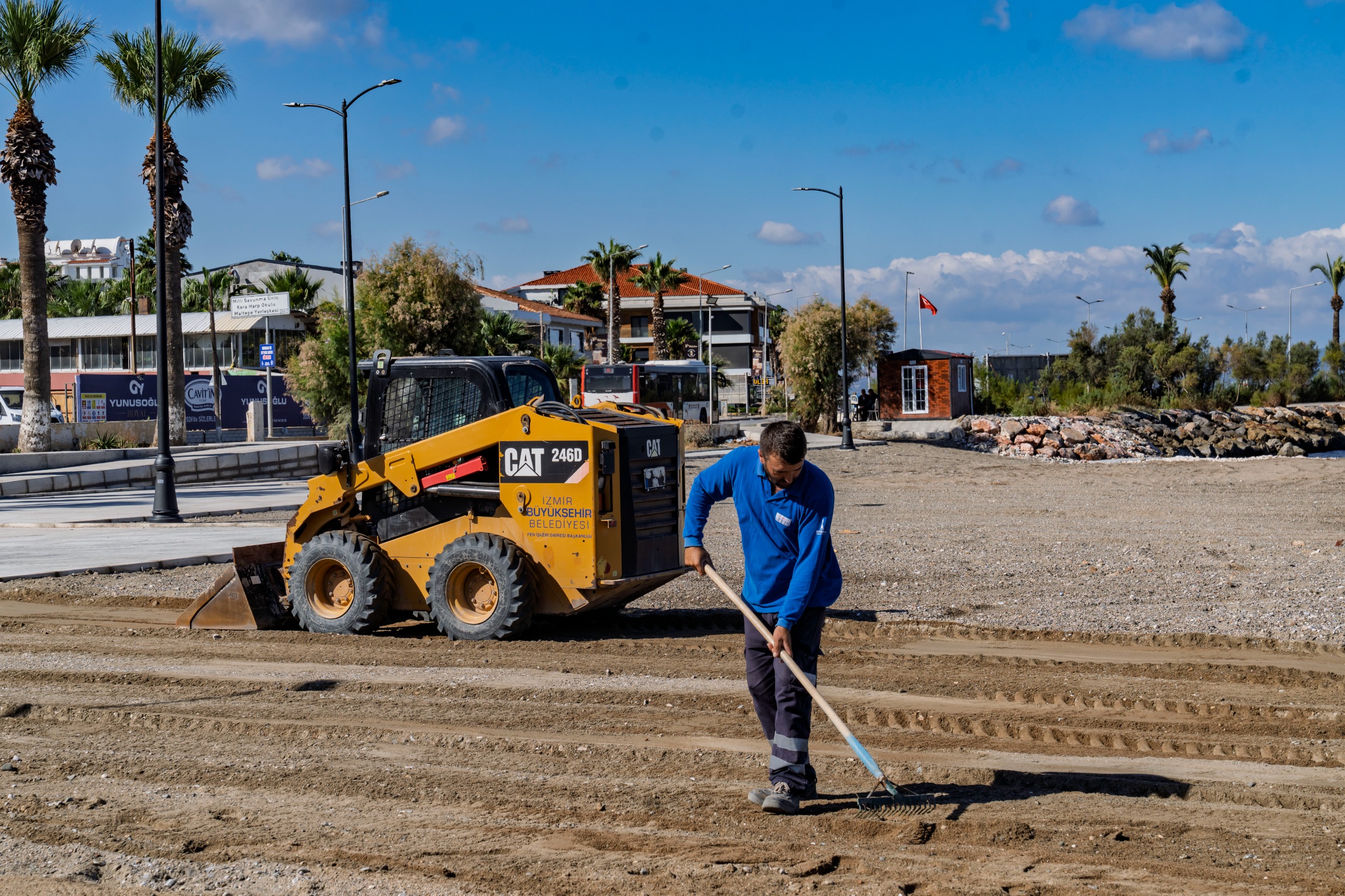 İzmir Büyükşehir Belediyesi, Güzelbahçe’nin girişinde yer alan 2 bin metrekarelik denize sıfır alana plaj ve sosyal tesis kazandırmak için kolları sıvadı. Alanda atıl durumdaki yapıyı kaldıran ekipler, zemin, altyapı ve kıyı düzenlemelerini tamamladı. Tesisin önümüzdeki yaz sezonunda açılması planlanıyor.