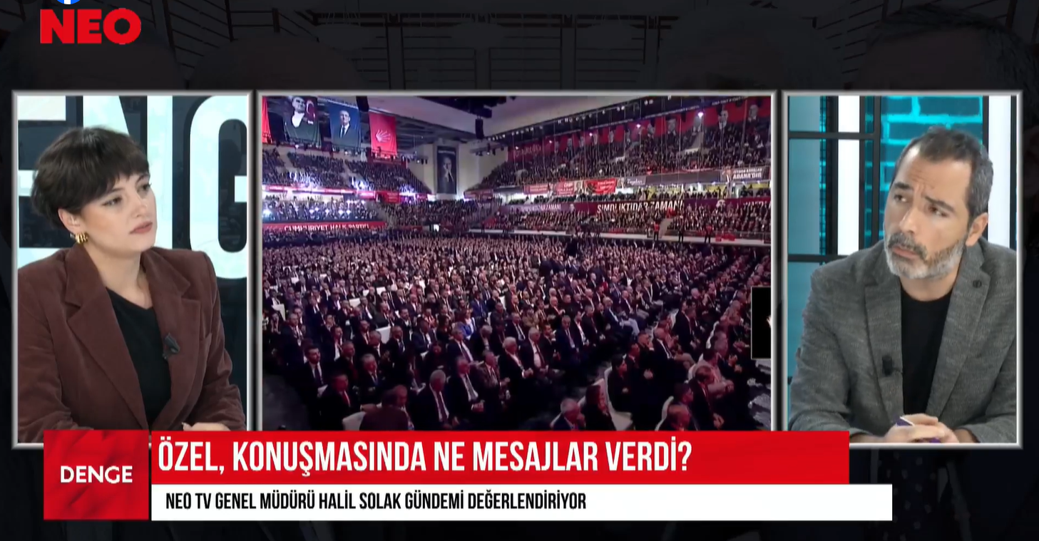 NEO TV’nin Denge programında Gizem Güzelgün’ün sorularını yanıtlayan Gazeteci Halil Solak, CHP’nin 39. Olağan Kurultayı üzerine çok kapsamlı açıklamalarda bulundu. Solak, kurultayın üç gün süren yapısından parti içi tartışmalara, Özel ve İmamoğlu’nun konuşmalarından Kılıçdaroğlu’nun tavrına kadar bütün ayrıntıları uzun uzun anlattı.