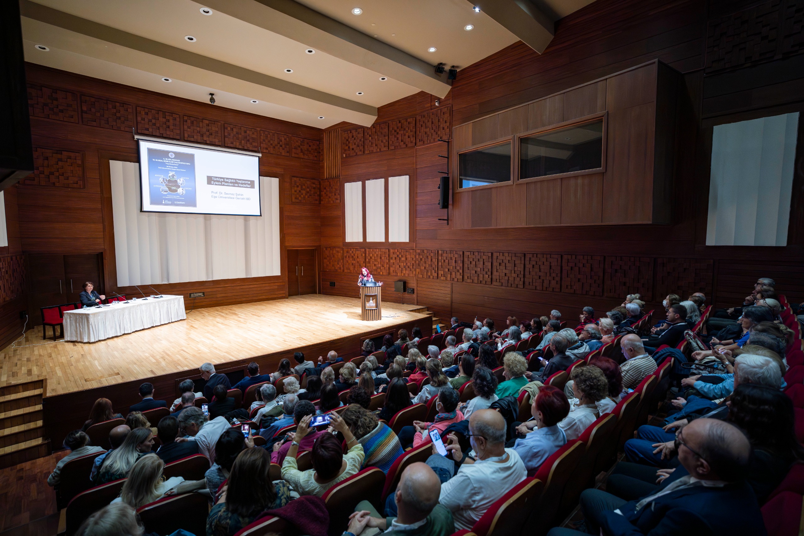 Sempozyuma başkanlık yapan Ege Geriatri Derneği’nden Prof. Dr. Sevnaz Şahin, İzmir’in binlerce yıllık kadim kültüründen örnekler vererek, “İleri yaş, biriken bilgelikle zamanın ötesine geçebilmektir. Yaşlanma da tıpkı İzmir gibi değişimin içinde kalıcı olmayı gerektirir. Özümüzü, bilgeliğimizi ve toplumsal rolümüzü korumayı gerektirir. Yaşlanmak İzmir olmaktır, kadim olmak, dayanıklı olmak, çok sesli olmak ve geleceğe dönük bakış açısına sahip olmaktır. Bu sempozyum, geçmişin bu değerli birikiminden ilham alarak, ileri yaş nüfusunun talep ve ihtiyaçlarını, sağlık, mimari, teknoloji, sosyal hizmetler ve yerel yönetimler çerçevesinde, bilimsel yöntemlerle irdeleyecektir. Buradaki her bir tebliğ ve tartışma, İzmir’in ‘Yaş Dostu Kent’ olma hedefine, tarihsel bir derinlik katacaktır” ifadelerini kullandı.