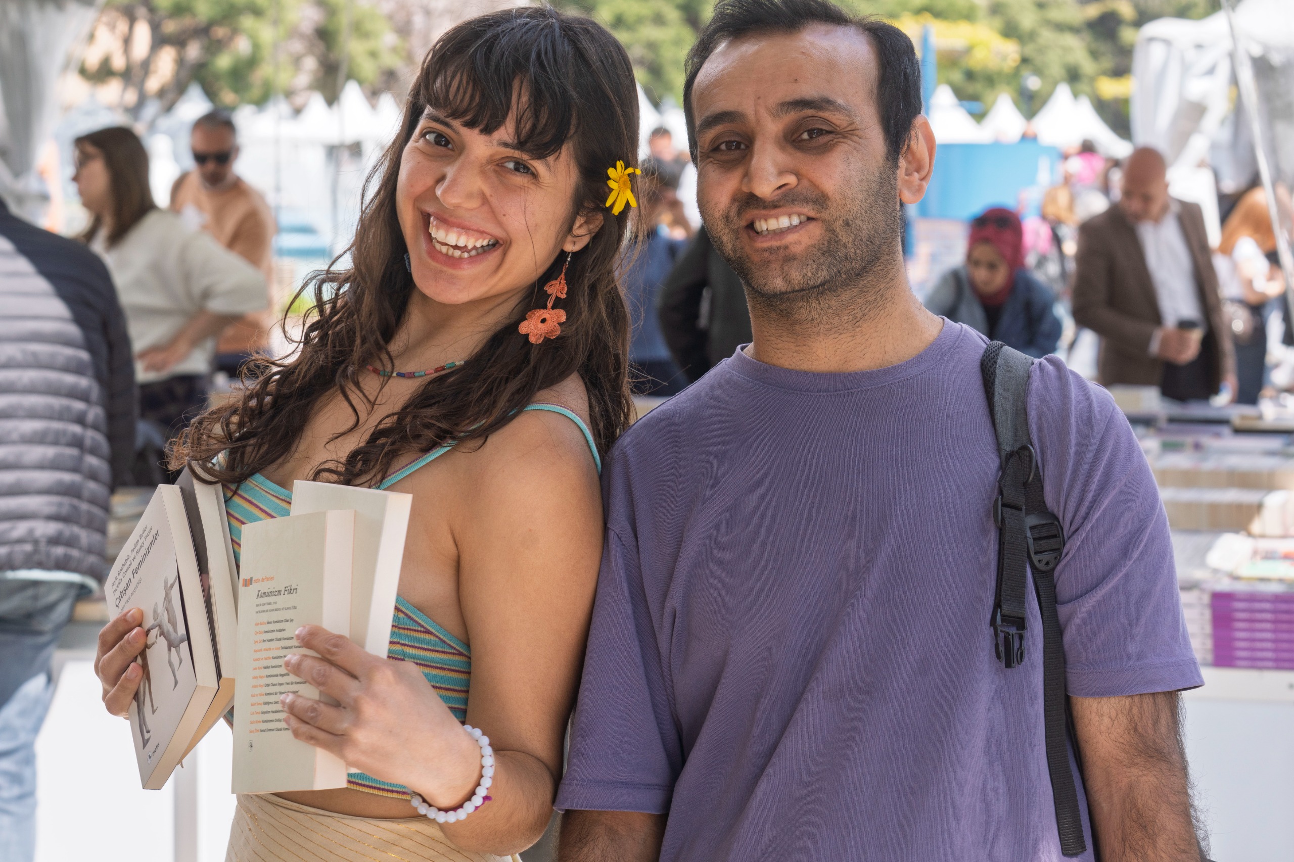 Eren Kural ise yazarların imza günleri için fuara geldiğini vurgulayarak, “Burada olmak çok güzel. Kitaplardaki bütün kahramanlar da bizimle bu kitap fuarında dolaşıyor. O nedenle çok mutluyuz” diye konuştu. Emre Pekşen ise fuarın meraklılarından olduğunu belirterek, bazı yayın evlerinin daha fazla stant açmasını istedi.