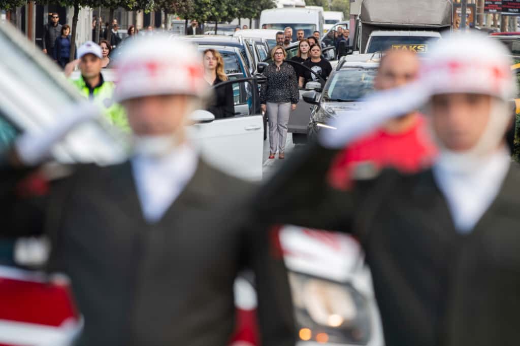 Saatler, Ata’nın hayata gözlerini yumduğu 09.05’i gösterdiğinde İzmir’de hayat iki dakika boyunca durdu. Cumhuriyet Meydanı’ndan yükselen sirenler, taşıtların kornalarıyla tüm kente yayıldı. İZDENİZ gemileri körfezde sirenleriyle eşlik etti. İzmirliler 7’den 70’e toplu taşıma araçlarında, caddelerde, meydanlarda, sokaklarda, iş yerlerinde, okullarda, şehrin dört bir yanında Ata’ya saygı duruşunda bulundu.