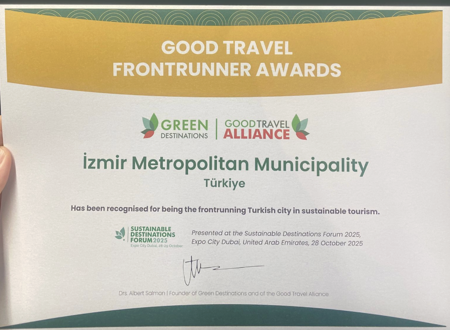İzmir Büyükşehir Belediyesi, sürdürülebilir turizm alanında yaptığı çalışmalar neticesinde Green Destinations & Good Travel Alliance tarafından “Good Travel Frontrunner Award”-“Öncü Kuruluş” ödülü kazandı. Ödül, Dubai Expo City’de düzenlenen Green Destinations Sürdürülebilir Destinasyonlar Forumu’nda takdim edildi.