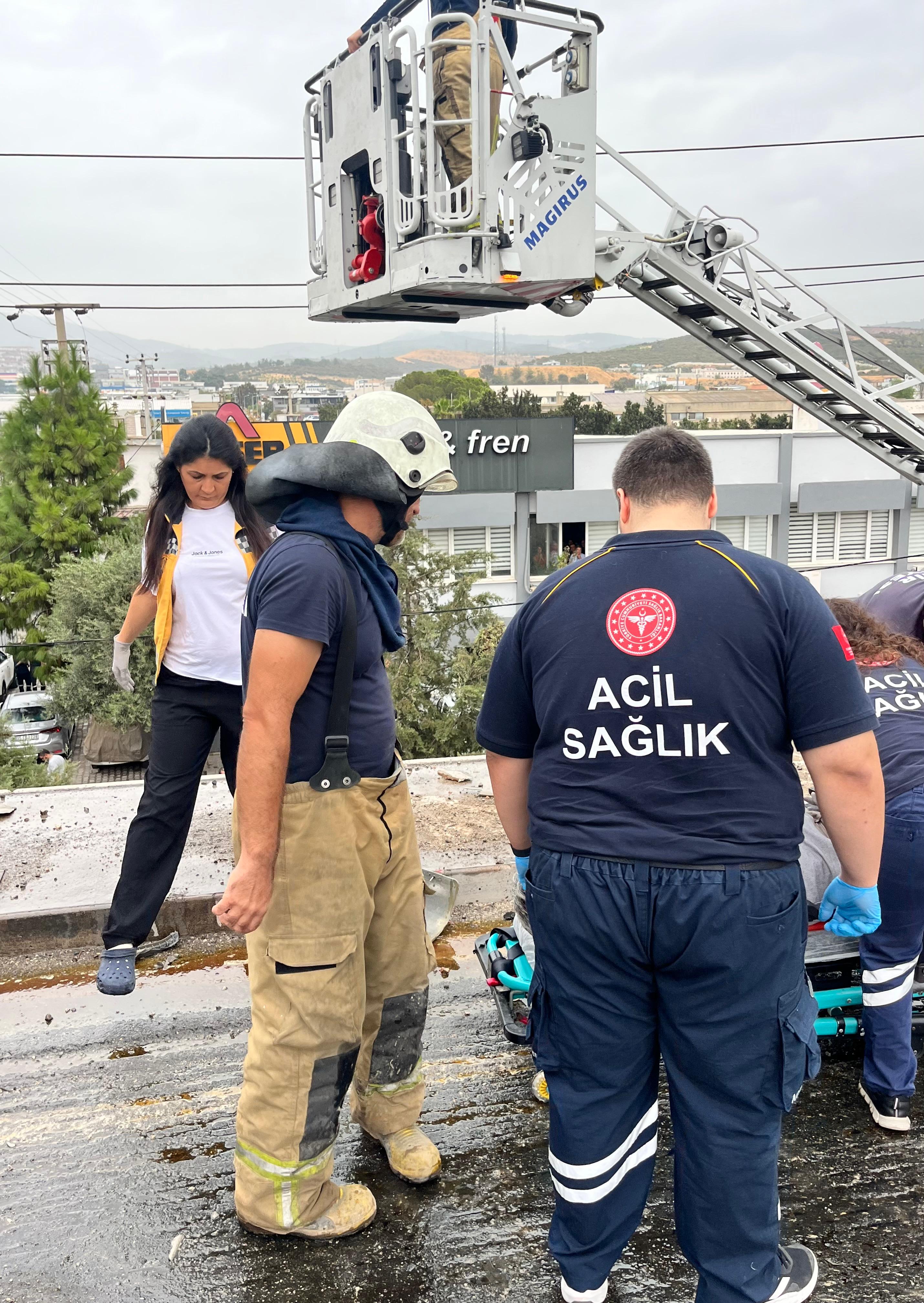 İzmir Büyükşehir Belediyesi İtfaiye Dairesi Başkanlığı ekipleri, yağmurun yağmasıyla kayganlaşan yolda direksiyon hakimiyetini kaybederek 12 metrelik viyadükte asılı kalan sürücüyü başarılı bir operasyonla kurtardı.