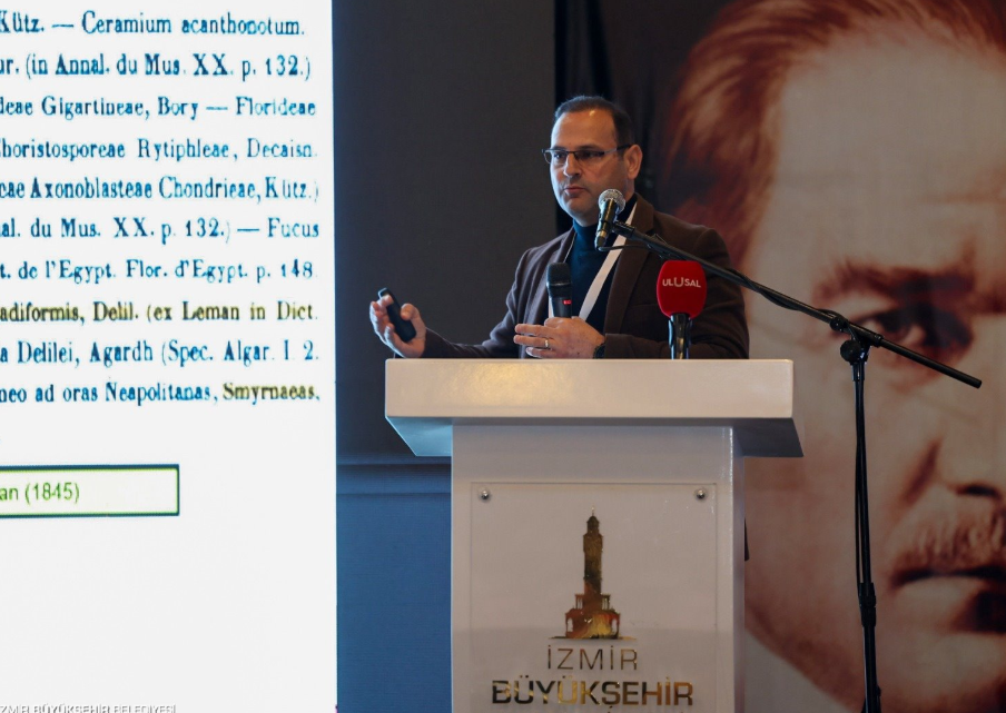 Manisa Celal Bayar Üniversitesi Mühendislik ve Doğa Bilimleri Fakültesi Biyoloji Bölümü – Hidrobiyoloji Ana Bilim Dalı’ndan Prof. Dr. Ergün Taşkın da “İzmir Körfezi’nin Makroflorası, Ekolojik Kalite Durumu ve Aşırı Makroalg Çoğalması” sunumunda, İzmir Körfezi’nde yapılan ilk çalışmalara dair bilgiler verdi. Geçmiş değerlendirmelere ayrı parantez açmasının ardından konuşan Taşkın iç körfezde türlerde azalma görüldüğünü aktardı. Değişkenlerin ölçülmesinin önemine ilişkin açıklama yapan Taşkın, “Körfeze ciddi bir kirlilik girdisi var. Sıcaklık da artış gösterdiğinde deniz marulları daha çok görülmeye başlanıyor. Evsel, tarımsal, endüstriyel her türlü girdinin azaltılması, fosfat ve azotun kesilmesi gerekiyor” diye konuştu.