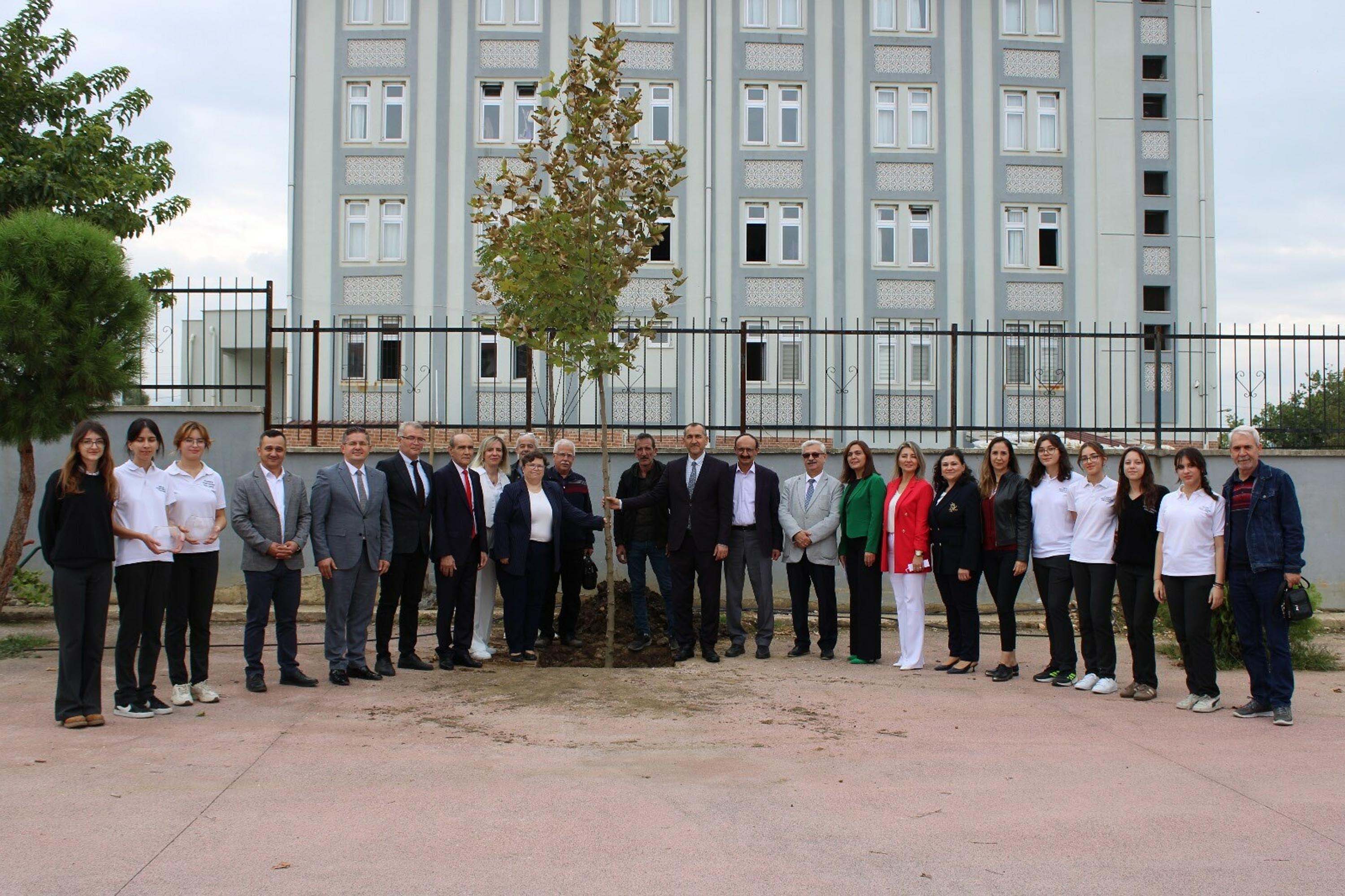 İzmir’de bu yaz çıkan orman yangınlarından en çok etkilenen ilçelerden Ödemiş’te Ayhan Kökmen Fen Lisesi’ne Türkiye’nin 6 bölgesini temsilen okullardan toprak getirildi. 6 bölgenin toprağıyla bölge toprağı harmanlanarak okulun bahçesine Cumhuriyet'in 102’nci yılı anısına çınar fidanı dikildi.