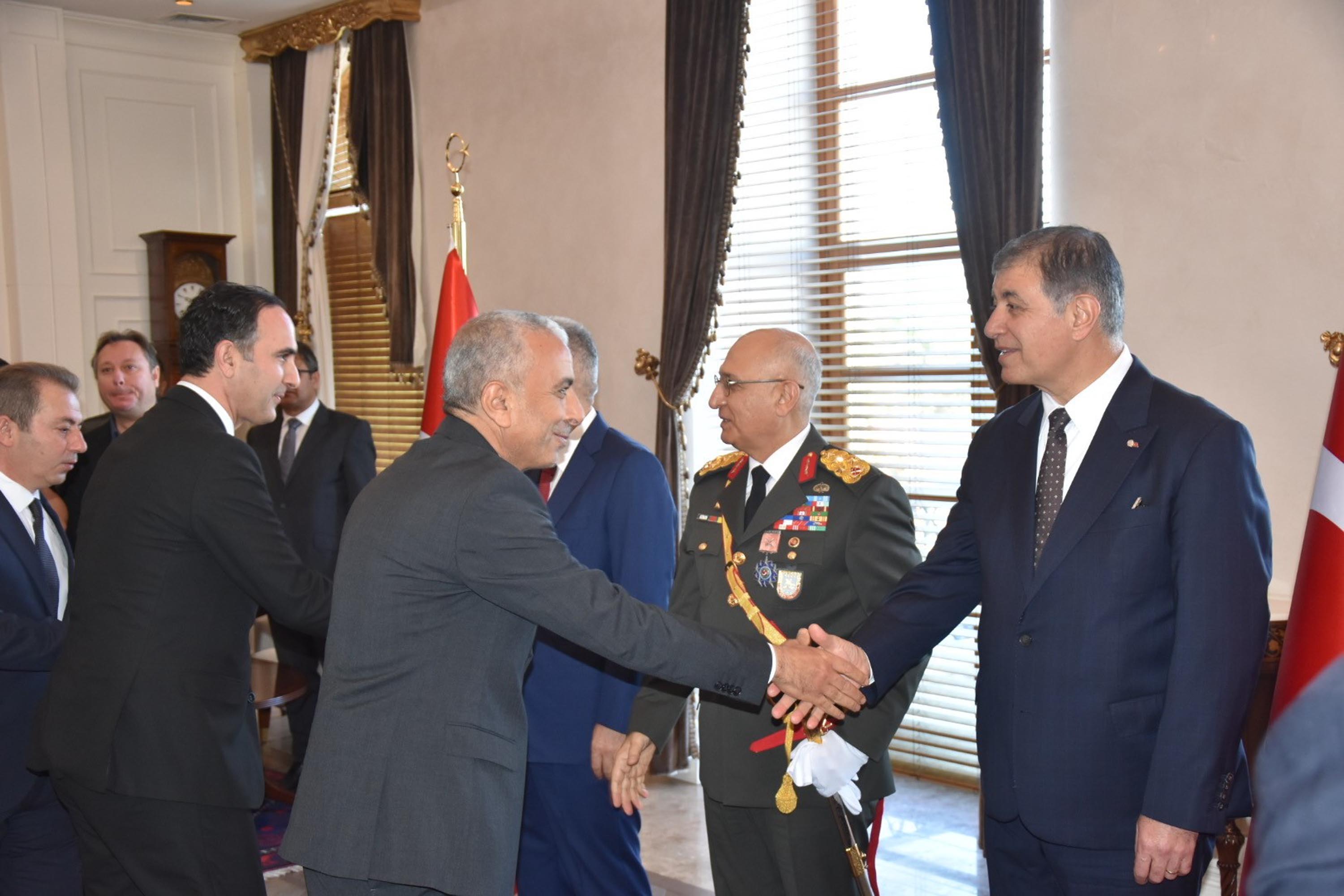 İzmir Valisi Süleyman Elban, Ege Ordusu ve Garnizon Komutanı Orgeneral İrfan Özsert ile İzmir Büyükşehir Belediye Başkanı Cemil Tugay tebrikleri kabul etti.