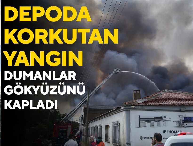 Alevler kısa sürede depoyu sardı, siyah duman gökyüzünü kapladı.