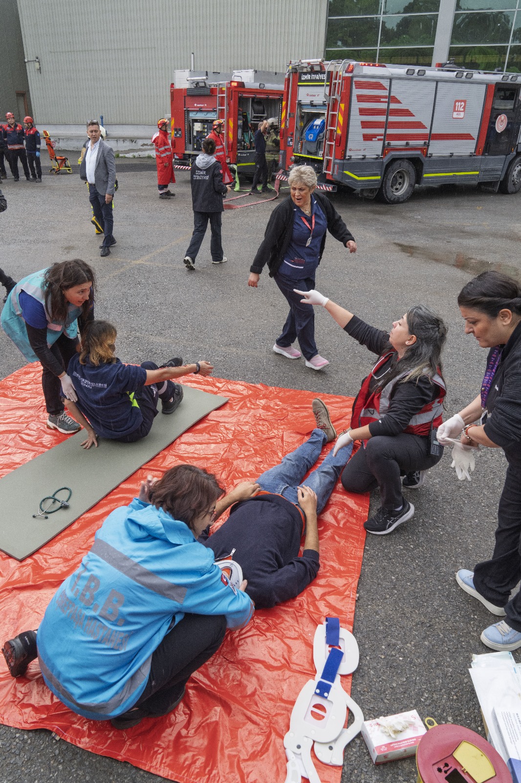 İzmir Büyükşehir Belediyesi, olası afet durumlarına hazırlık kapsamında Kültürpark içerisinde binlerce personelin bulunduğu 4 holde eş zamanlı deprem ve yangın tatbikatı yaptı. Tatbikatta senaryo gereği önce deprem meydana geldi. Ardından yangın çıktı. Durumun itfaiye ekiplerine bildirilmesi üzerine olay yerinde hemen arama ve kurtarma çalışmaları başlatıldı. Yine senaryo gereği hollerde çalışanlar da tahliye edildi. Ekipler, içeride 5 kazazedenin bulunduğu yönündeki bilgi üzerine çalışmalarını genişletti.