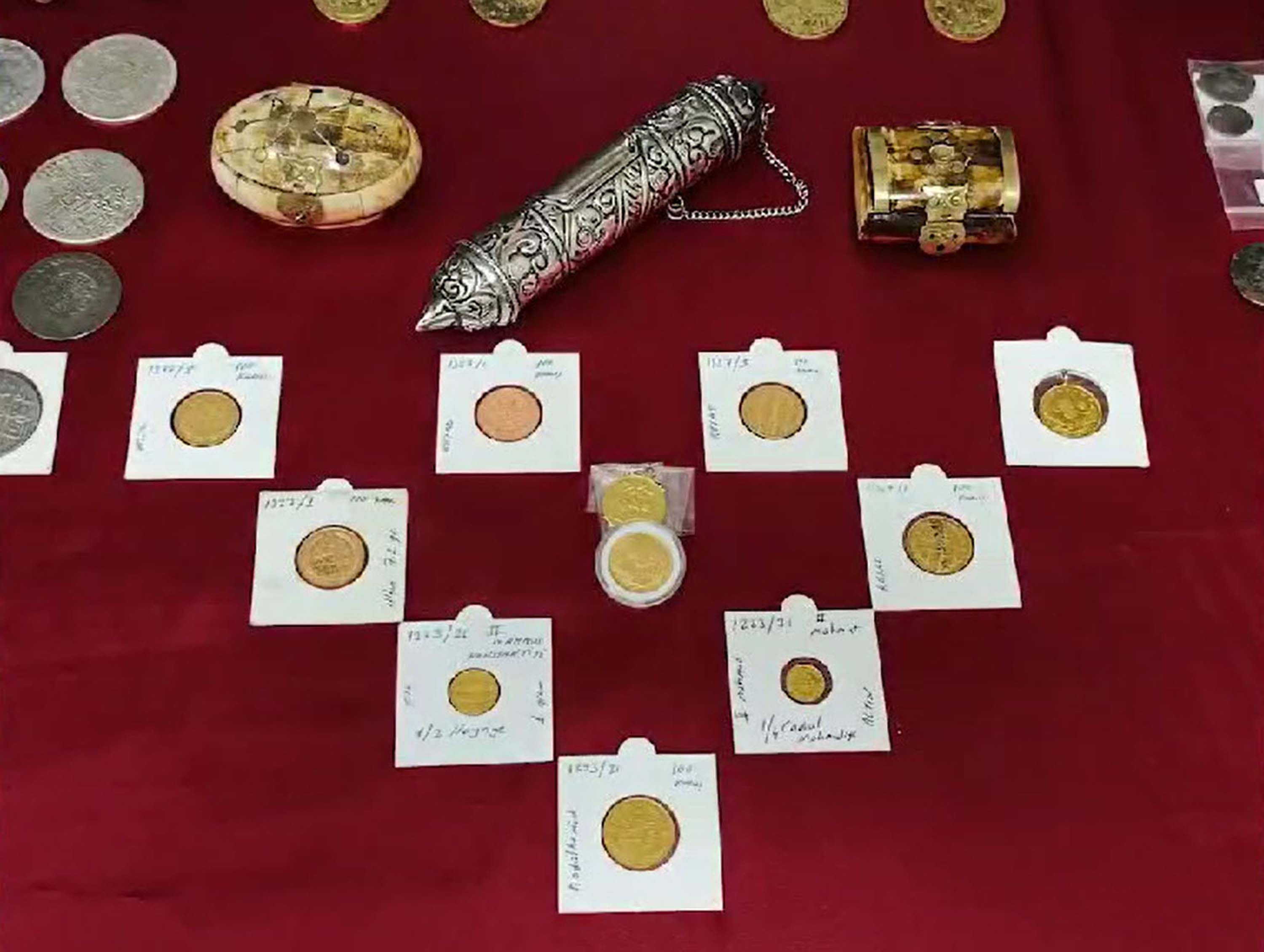 Yapılan aramalarda piyasa değeri yaklaşık 20 milyon TL olan 2 bin 60 sikke, 68 zolta ve taler (ödüllendirme parası), 8 istiklal madalyası, 17 mühür, 32 yüzük, 248 çeşitli obje ve tarihi eser ele geçirildi.