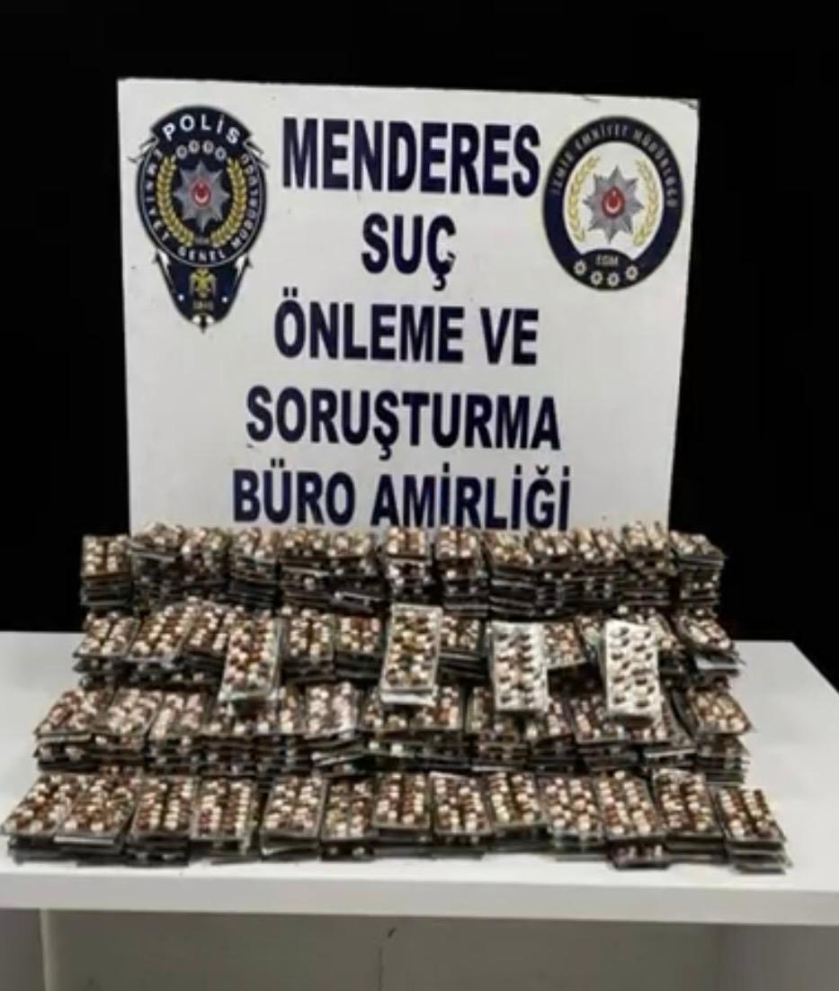 İzmir’in Menderes ilçesinde polis ekiplerinin düzenlediği operasyonda toprağa gömülü 9 bin 132 uyuşturucu ecza ele geçirildi.