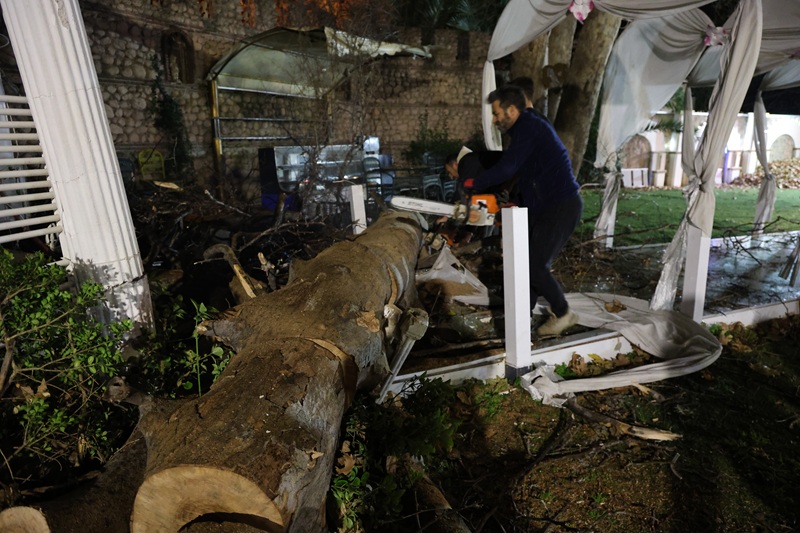 Ağaç, belediye ekiplerince kesilerek bulunduğu yerden kaldırıldı. Olayda, otomobilde ve düğün salonunun gelin odasında hasar oluşurken, çalışmaların ardından yol yeniden ulaşıma açıldı.(DHA)