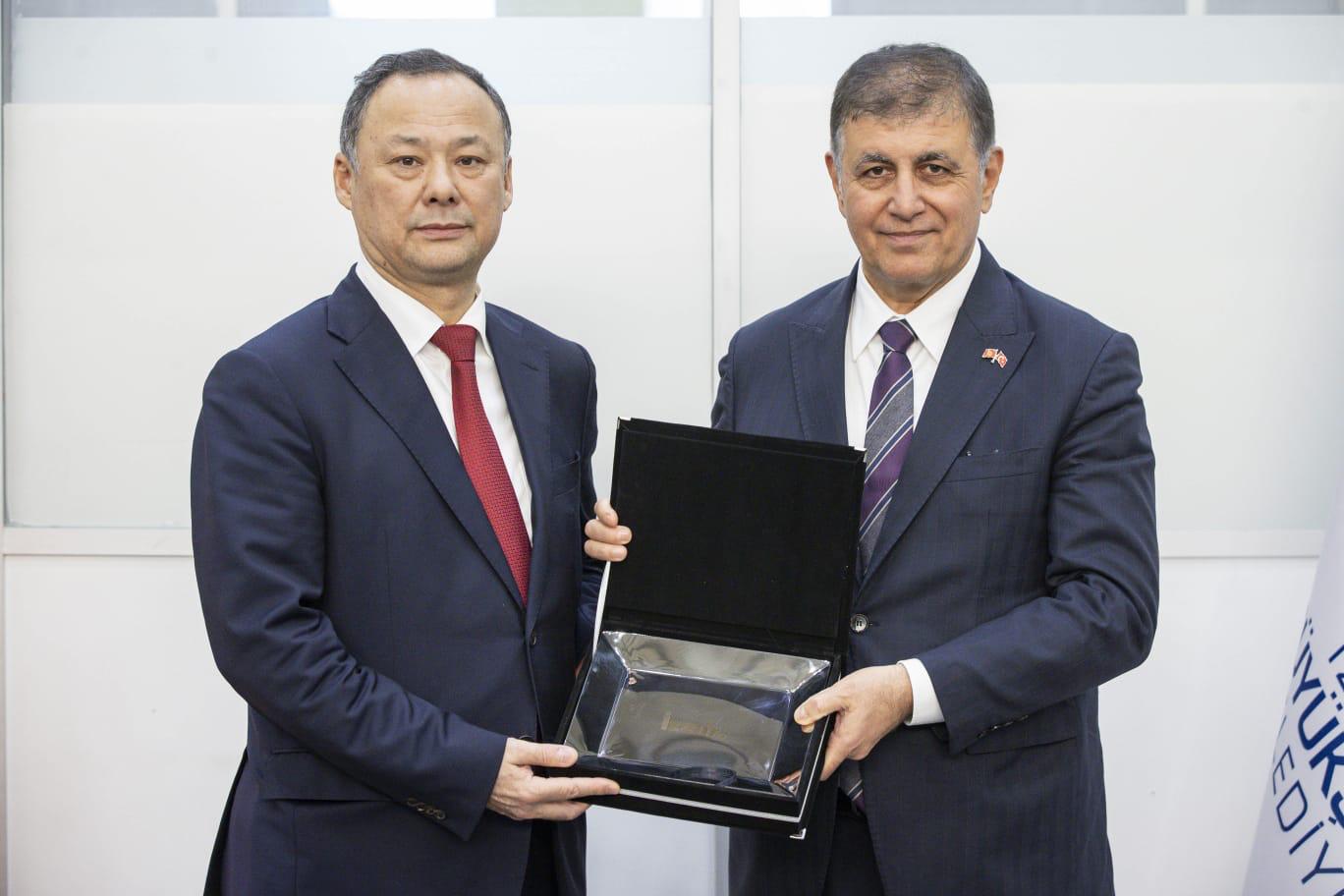 İzmir Büyükşehir Belediye Başkanı Dr. Cemil Tugay, Kırgızistan’ın Ankara Büyükelçisi Ruslan Kazakbaev’i açık ofisinde ağırladı. İş birliklerine vurgu yapan Başkan Tugay, “Sizler bizim için kardeş ülkesiniz. Çok yakın olmak istiyoruz. Ben bu konuda gerçekten çok istekliyim” dedi.